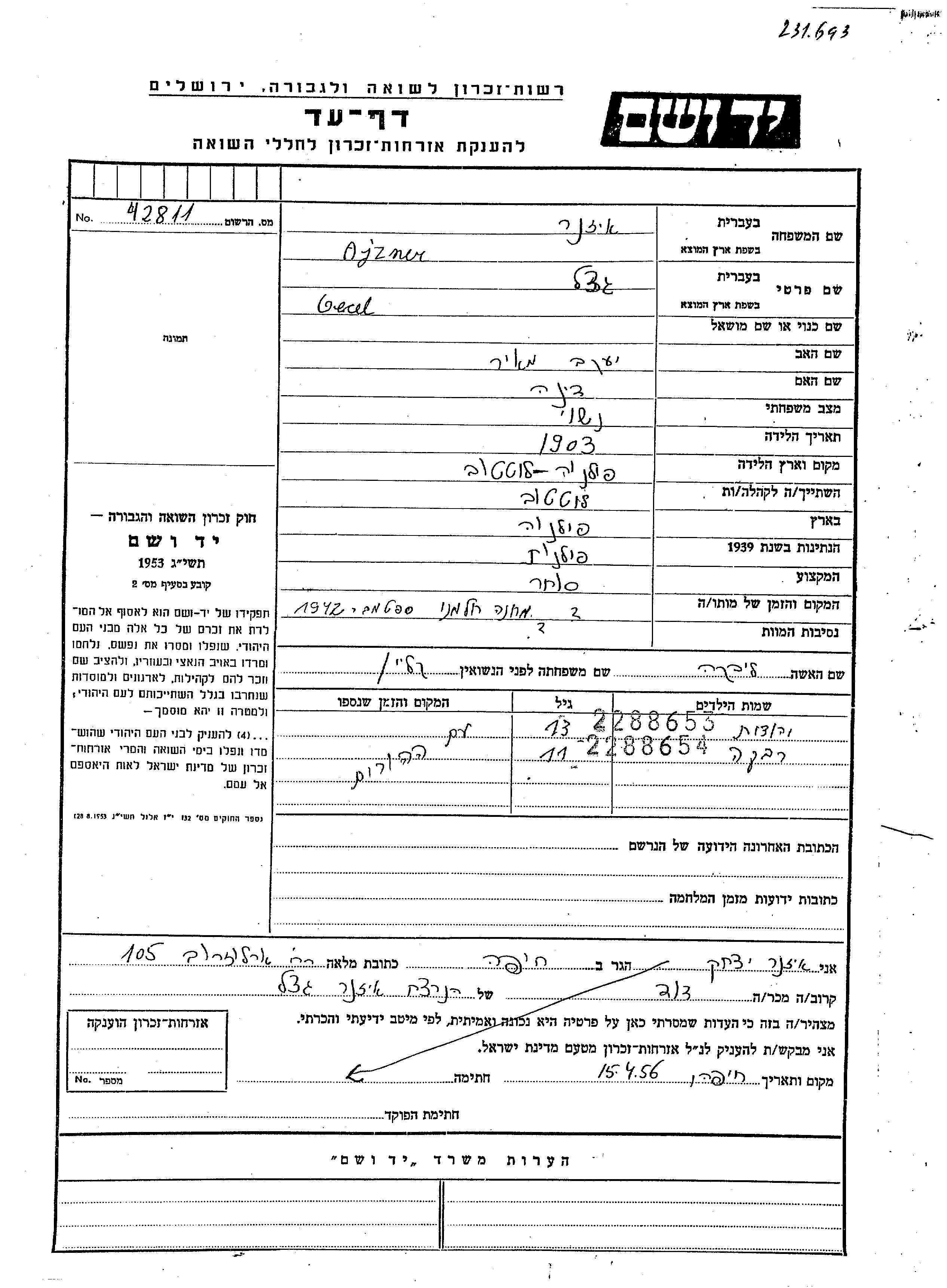 Yad Vashem - Pages of Testimony Names Memorial Collection