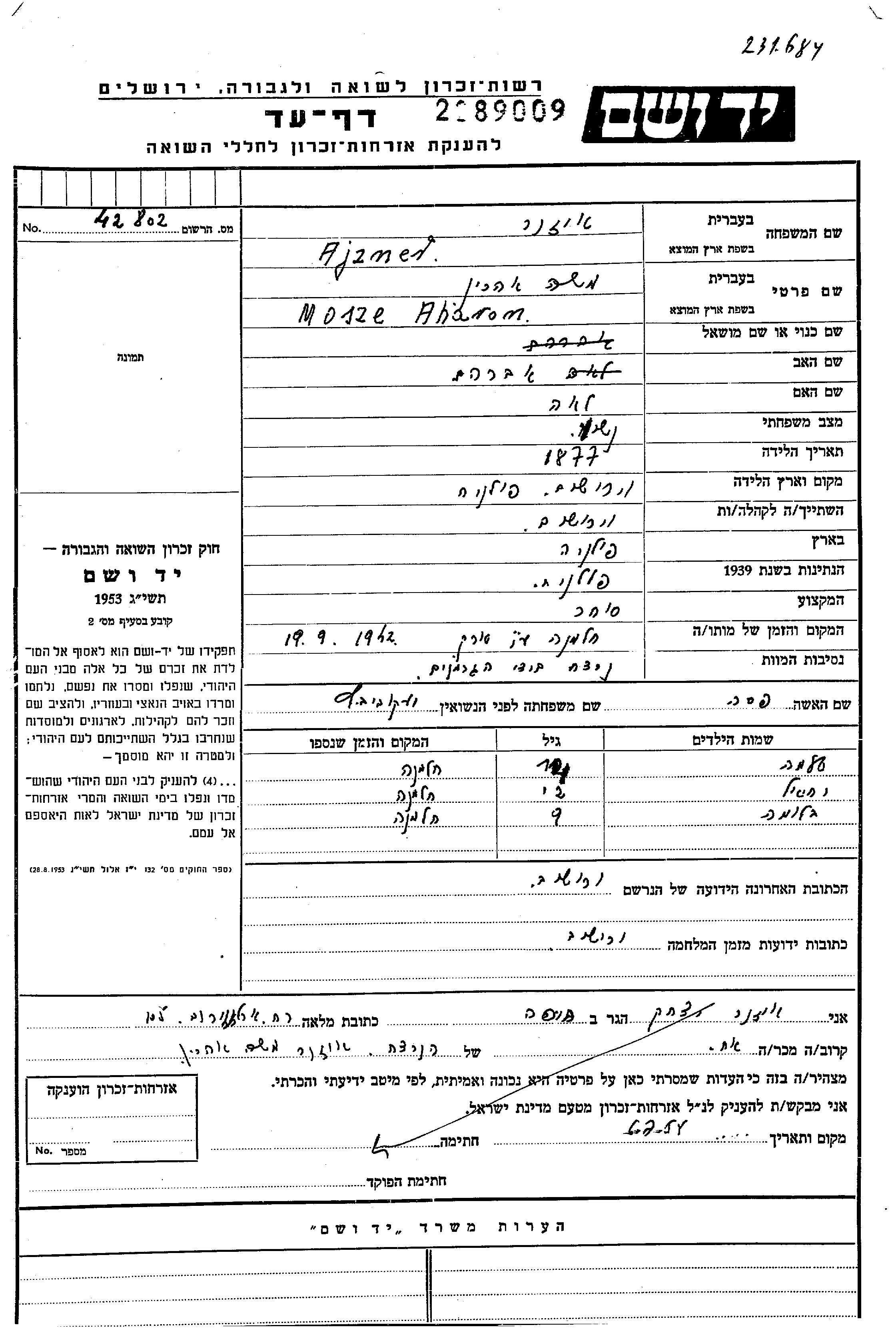 Yad Vashem - Pages of Testimony Names Memorial Collection