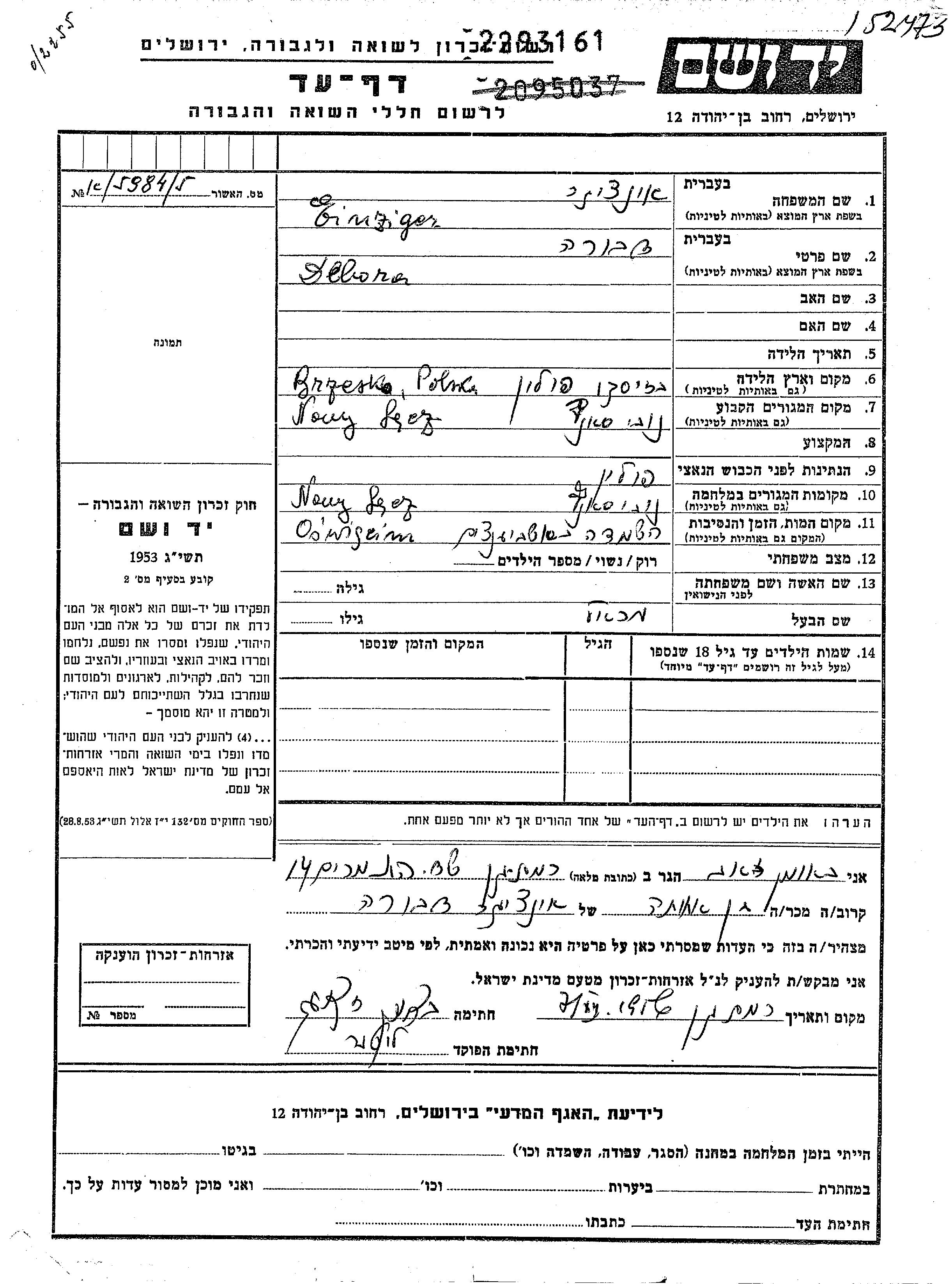 Einziger Debora Brzesko Nowe, Pologne Feuille de témoignage