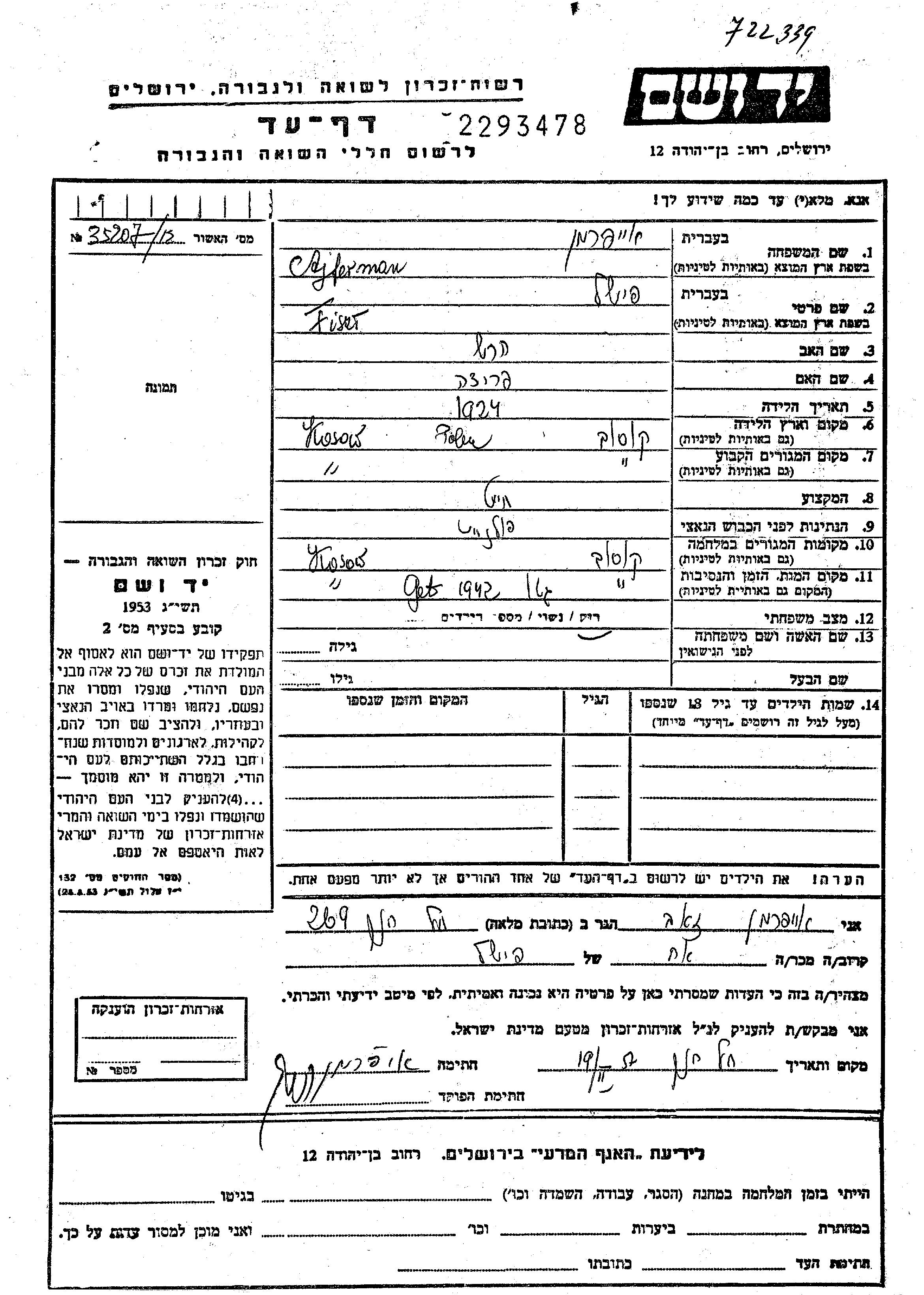 Yad Vashem - Pages of Testimony Names Memorial Collection