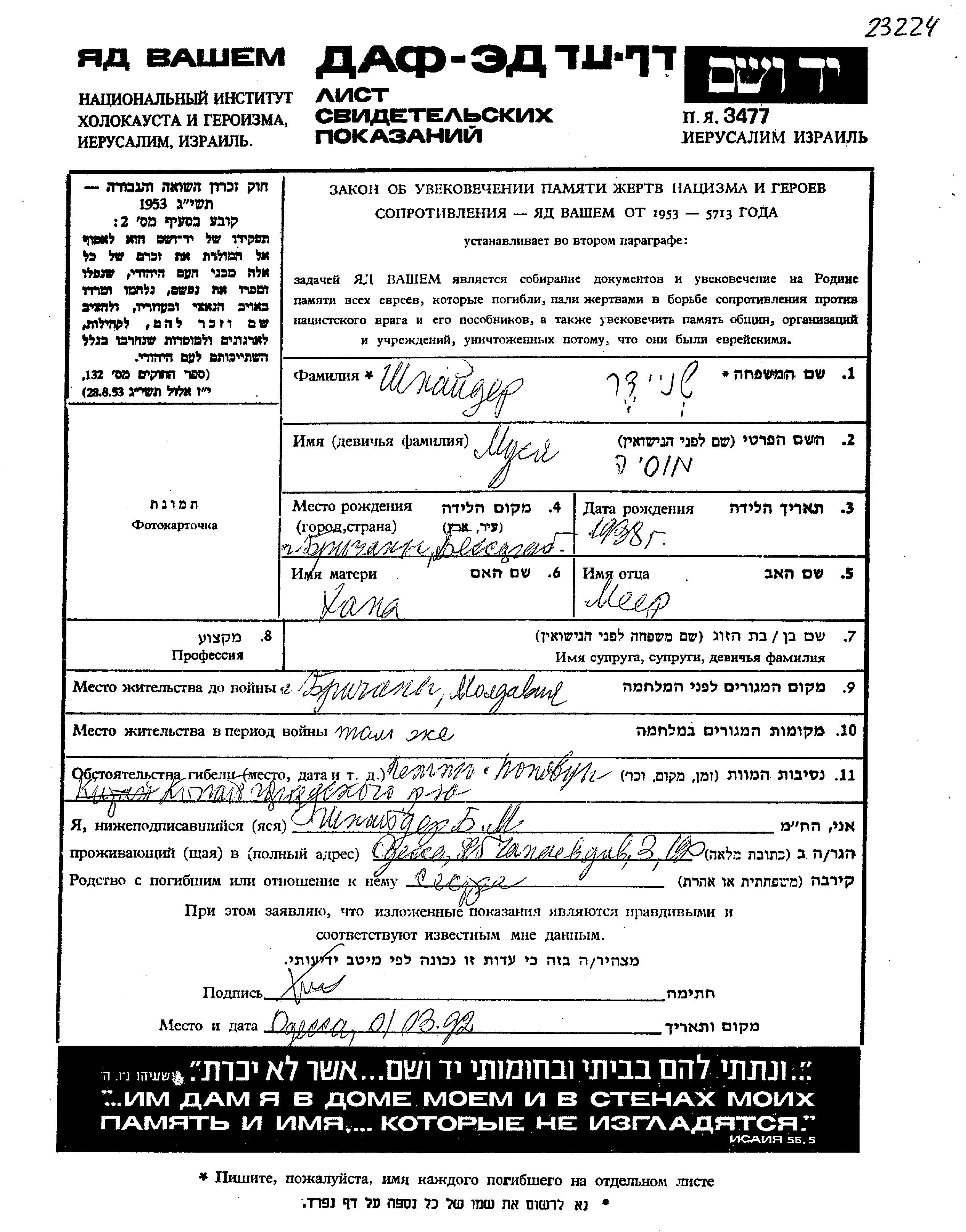 Yad Vashem - Pages of Testimony Names Memorial Collection