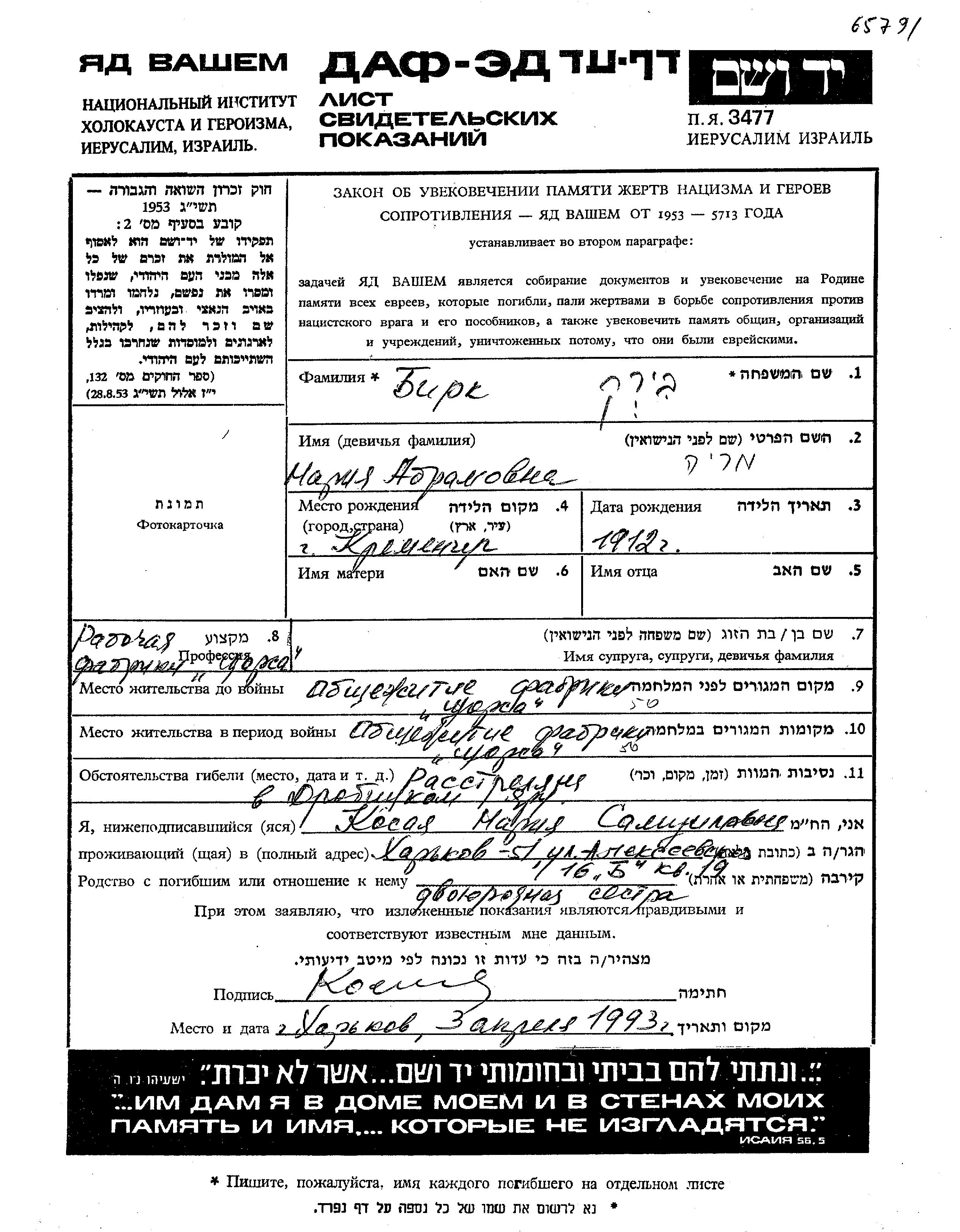 Yad Vashem - Pages of Testimony Names Memorial Collection