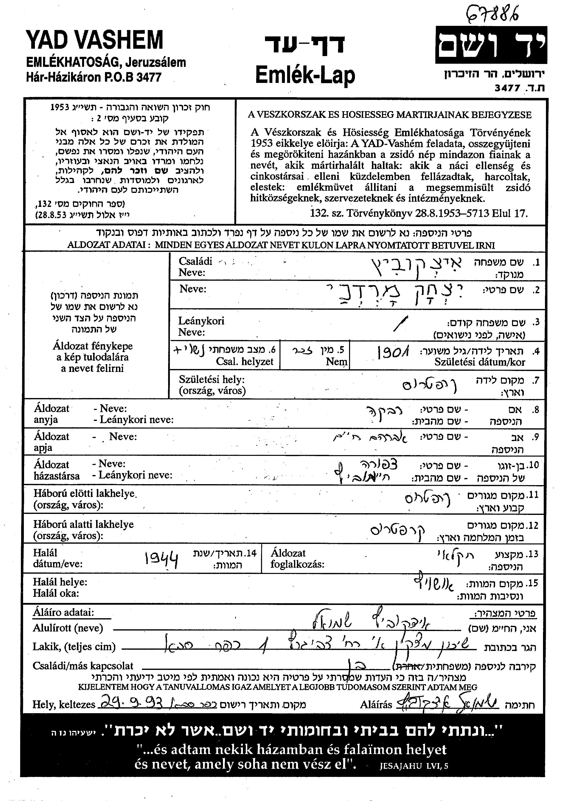 Yad Vashem - Pages of Testimony Names Memorial Collection