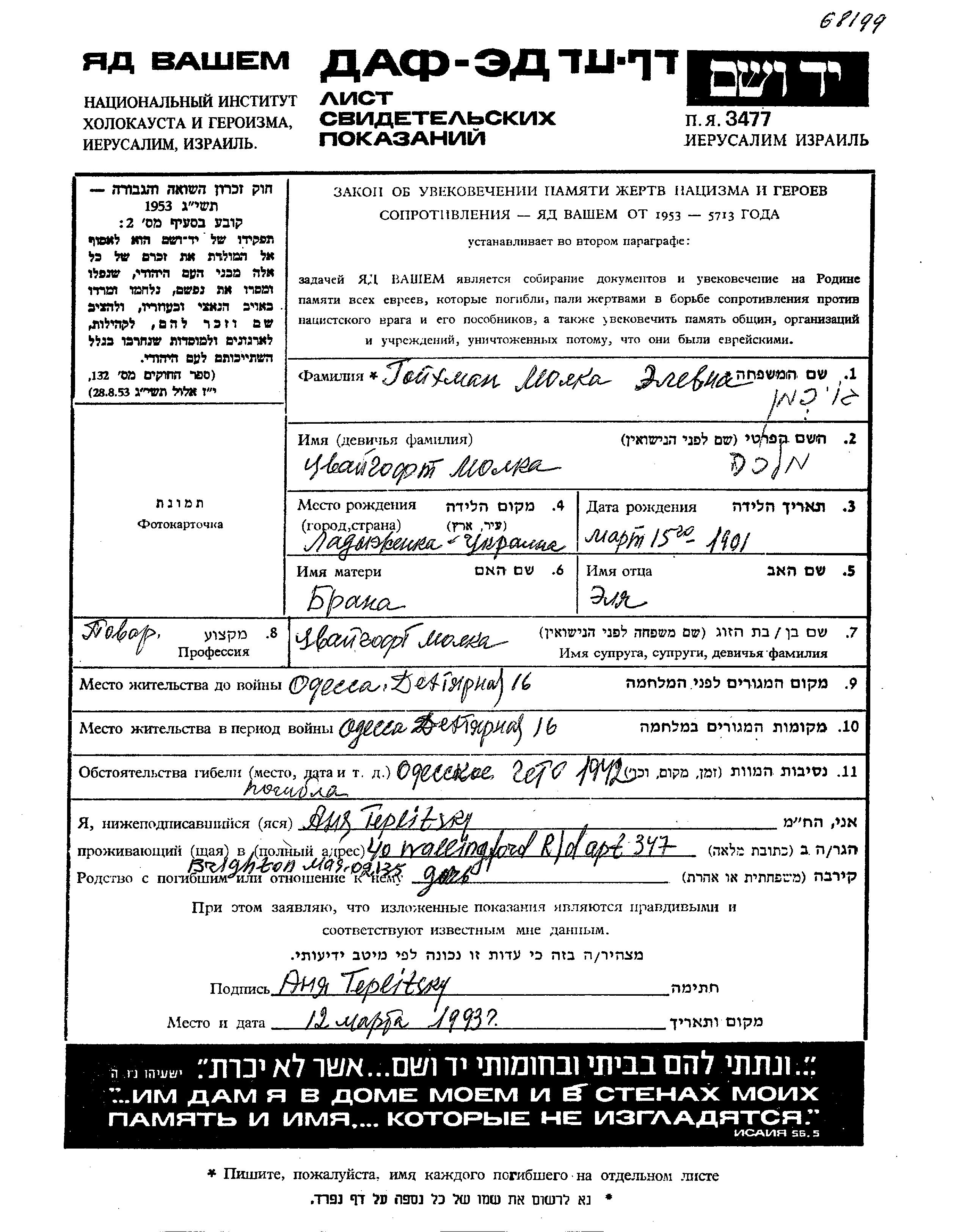 Yad Vashem - Pages of Testimony Names Memorial Collection