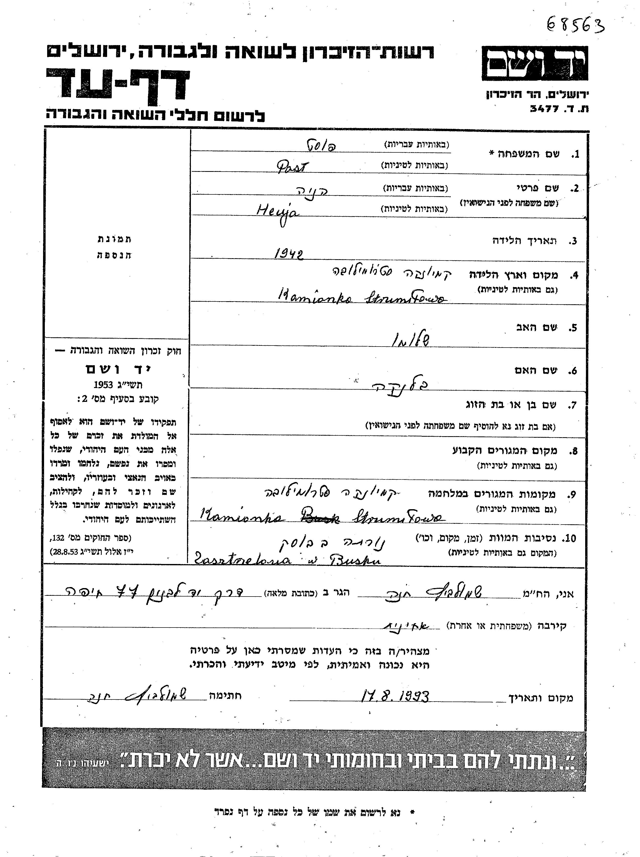 Yad Vashem - Pages of Testimony Names Memorial Collection