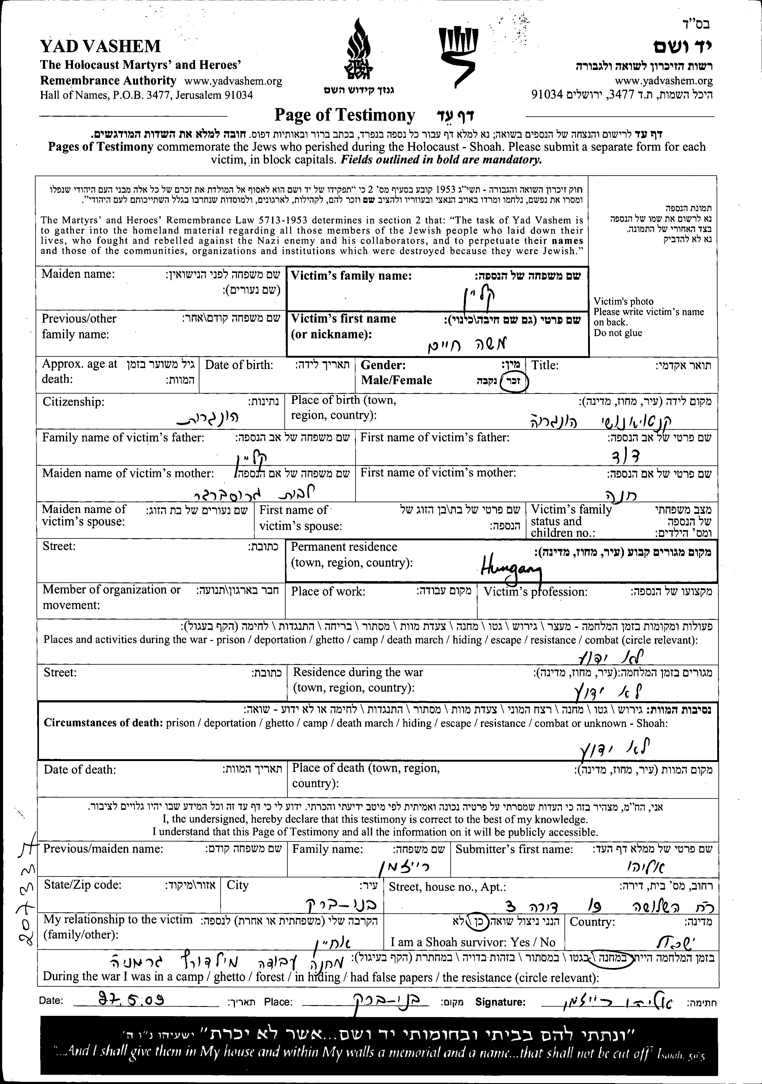 Recherche par lieu de résidence permanente avant la Shoah, ville, village, département, région ou pays.