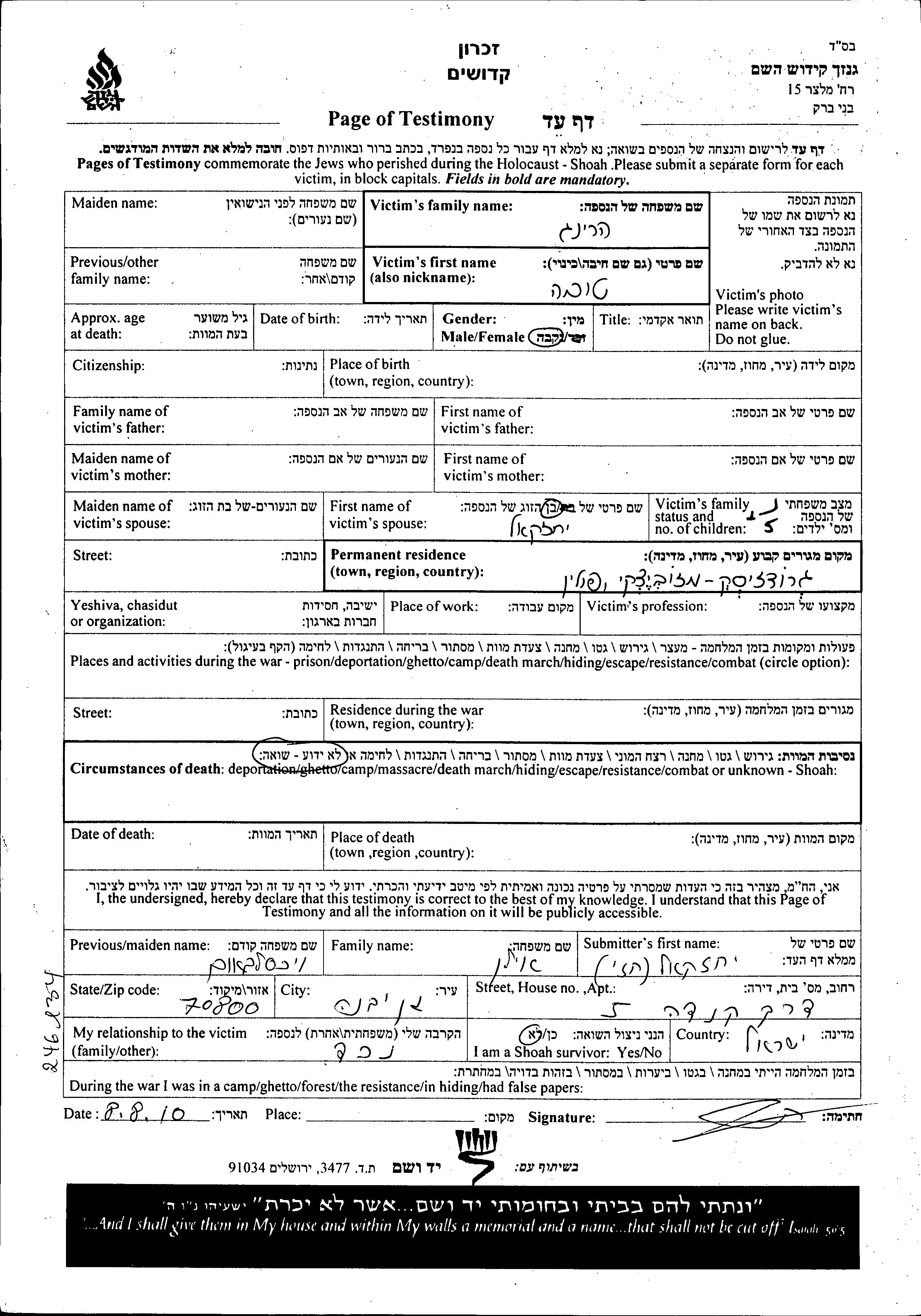 Recherche par lieu de résidence permanente avant la Shoah, ville, village, département, région ou pays.