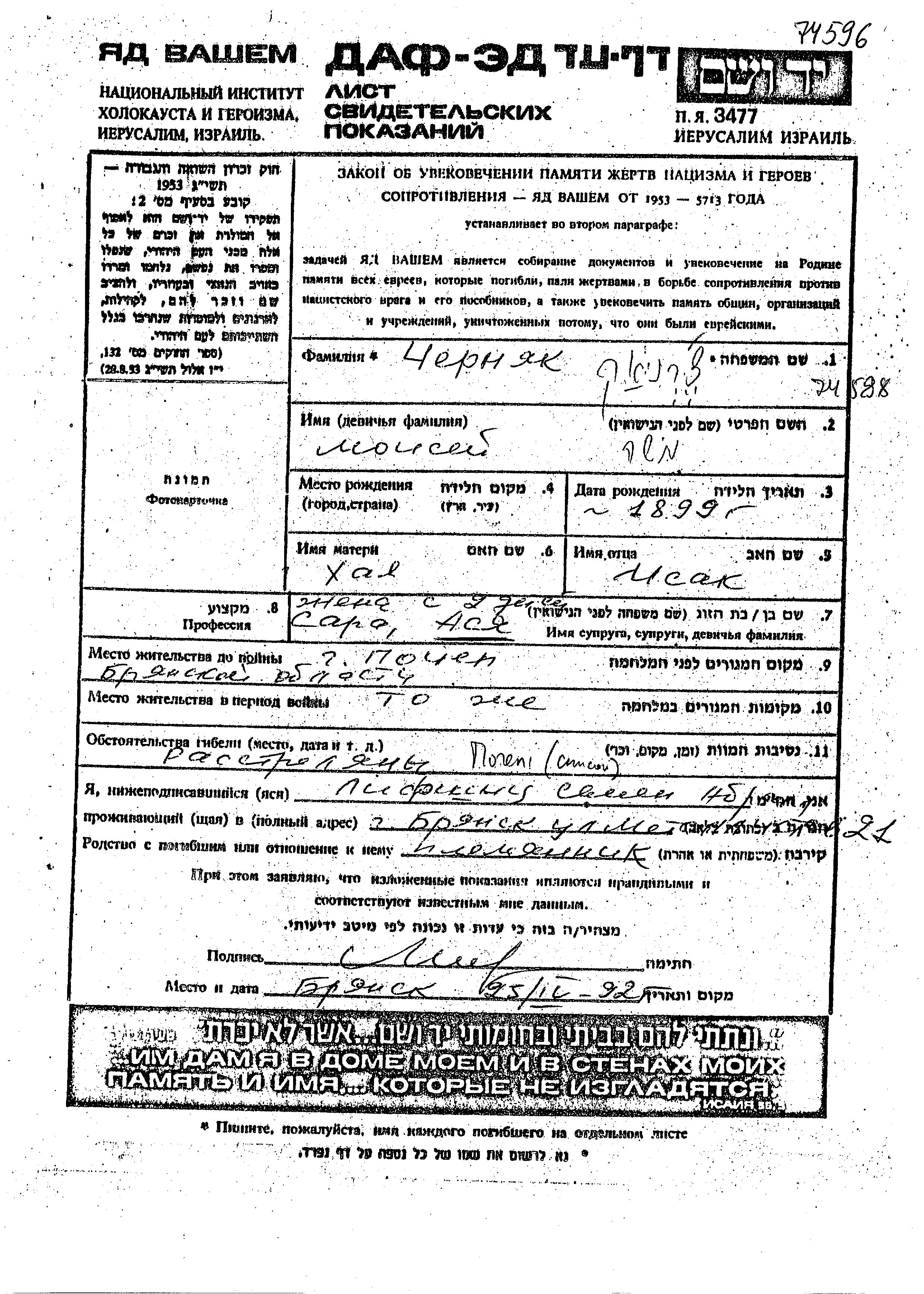 Yad Vashem - Pages of Testimony Names Memorial Collection