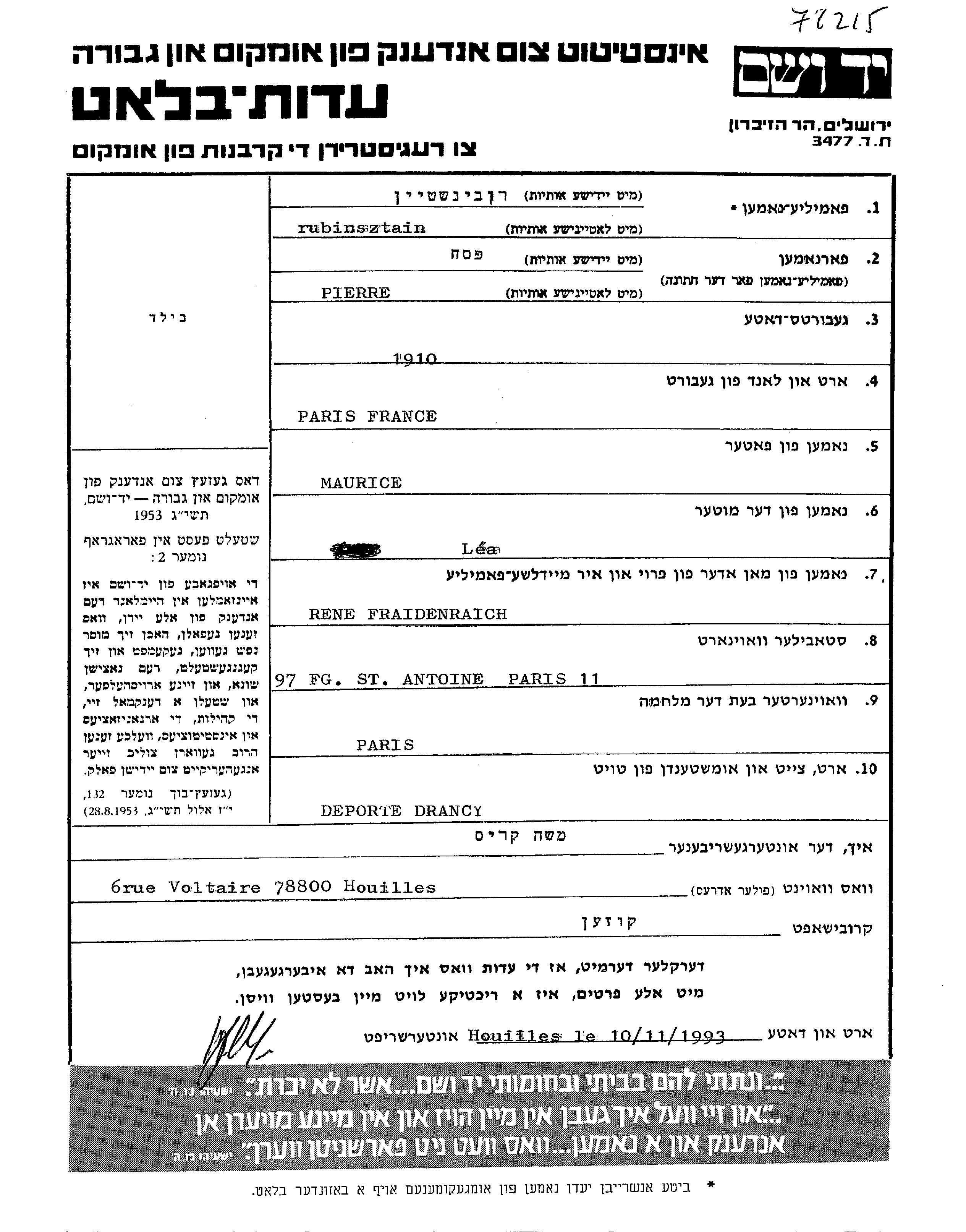 Recherche par lieu de résidence permanente avant la Shoah, ville, village, département, région ou pays.