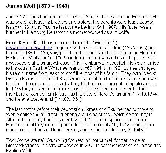 Wolf Isaac | James | 1870 | Hamburg, Allemagne | Biographie |