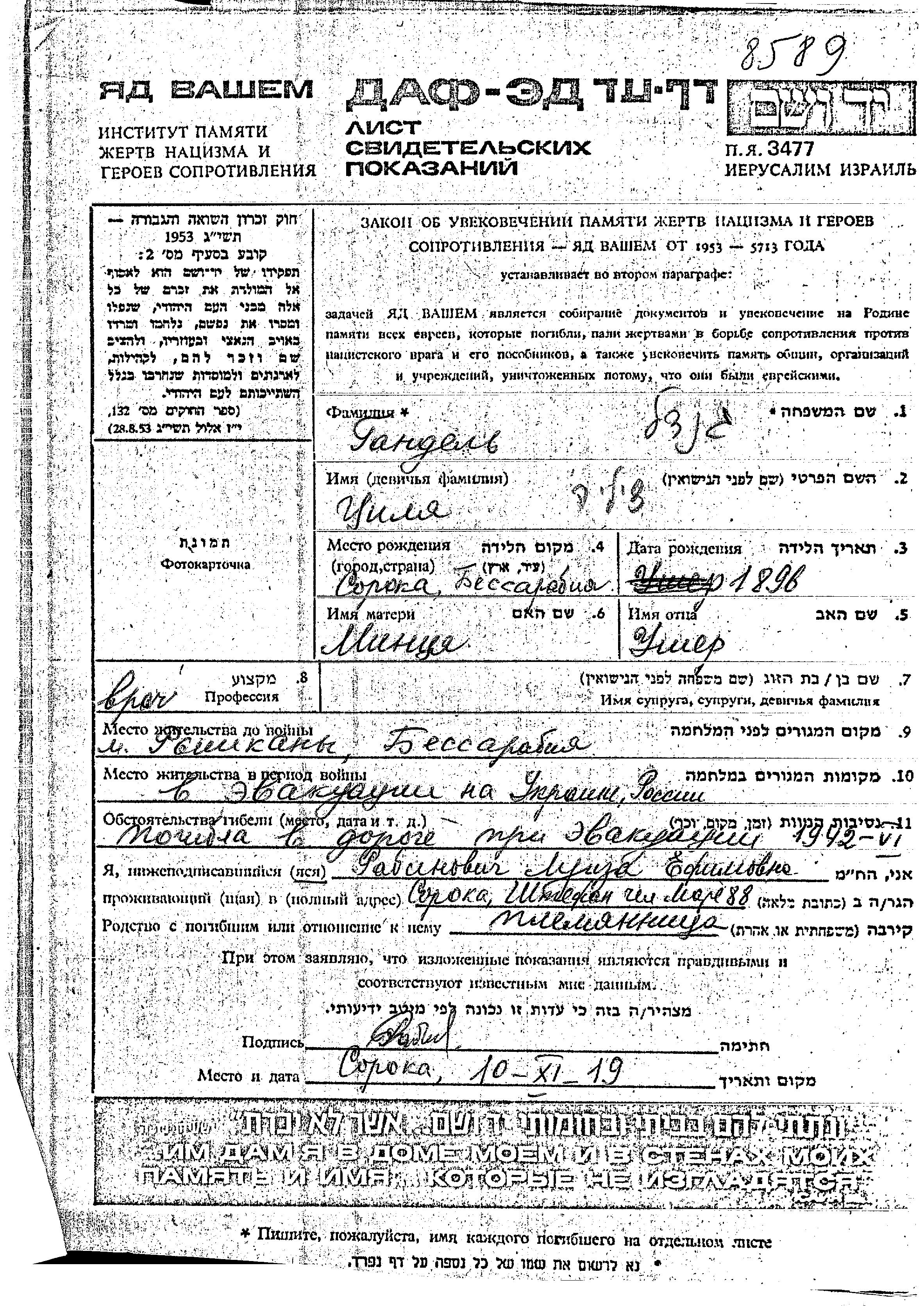 Yad Vashem - Pages of Testimony Names Memorial Collection