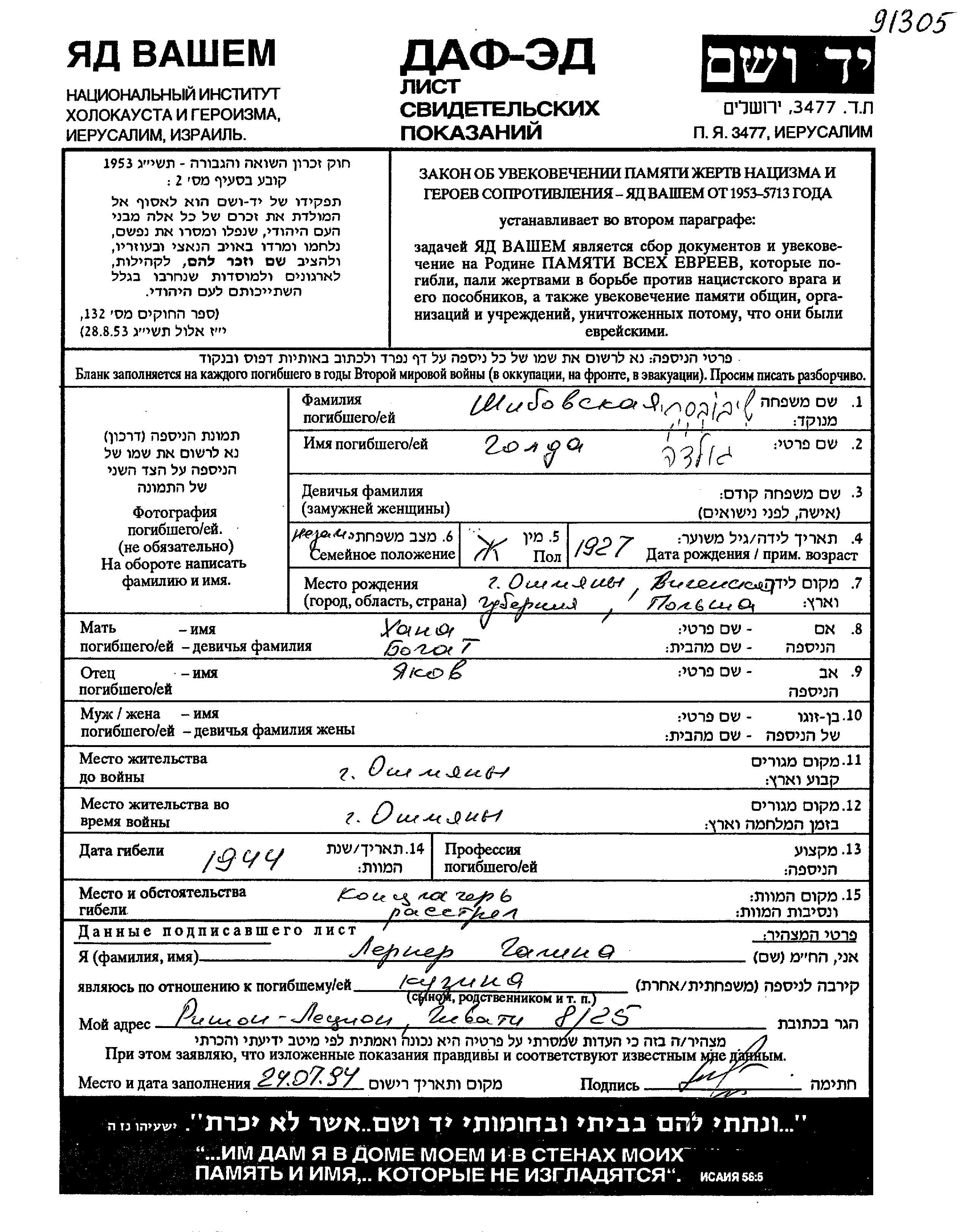 Yad Vashem - Pages of Testimony Names Memorial Collection