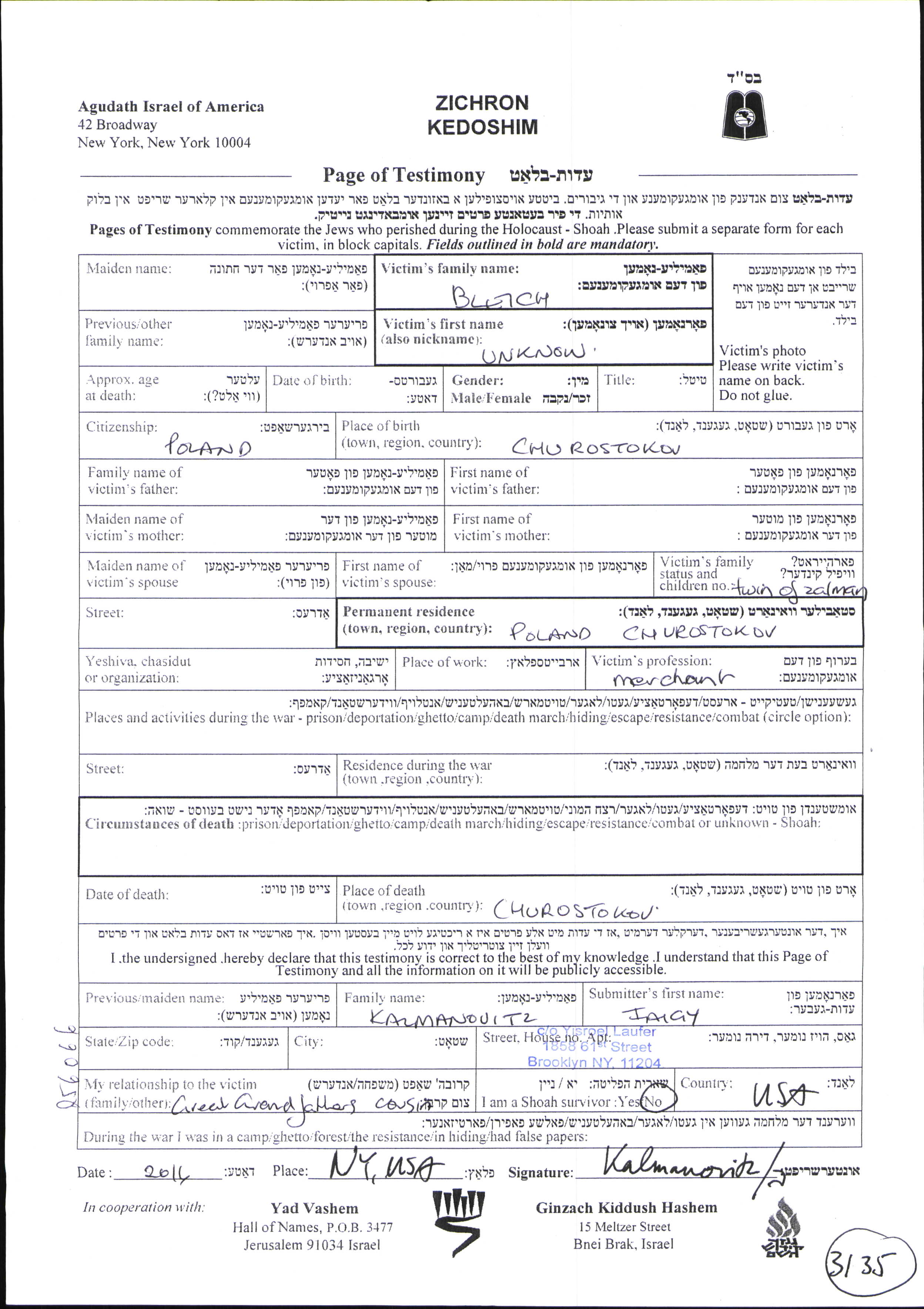 Yad Vashem - Pages of Testimony Names Memorial Collection
