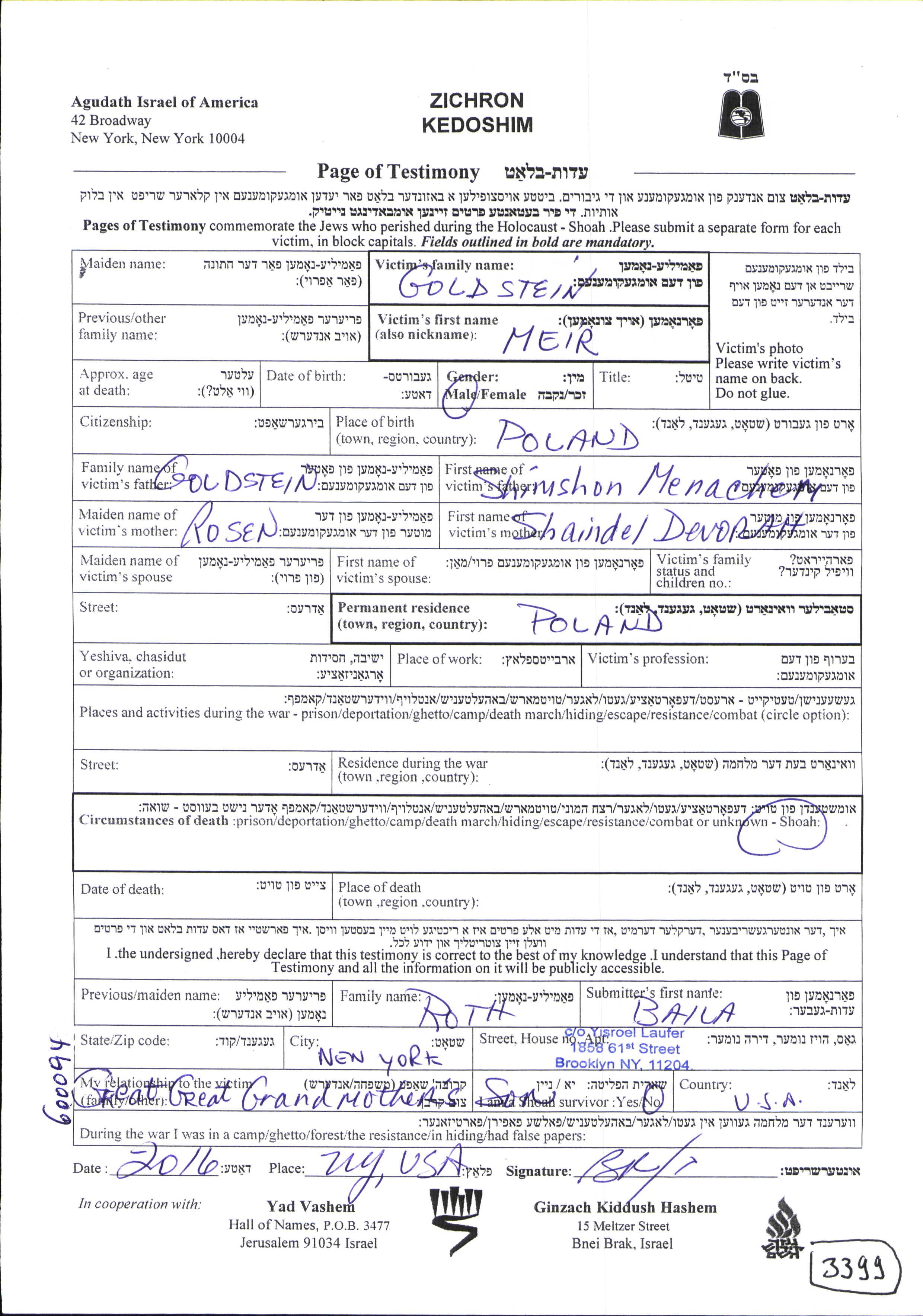 Yad Vashem - Pages of Testimony Names Memorial Collection