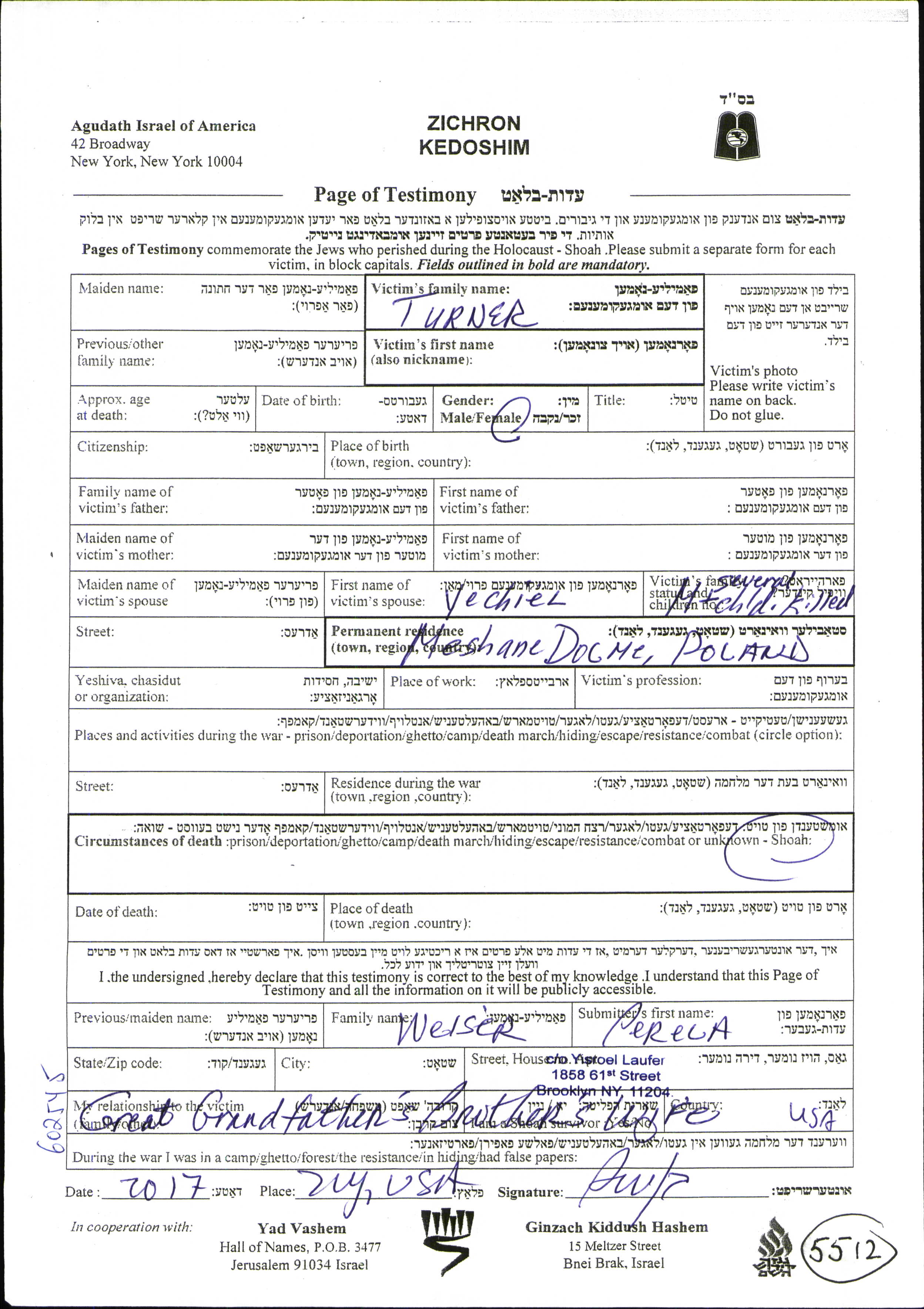Yad Vashem - Pages of Testimony Names Memorial Collection