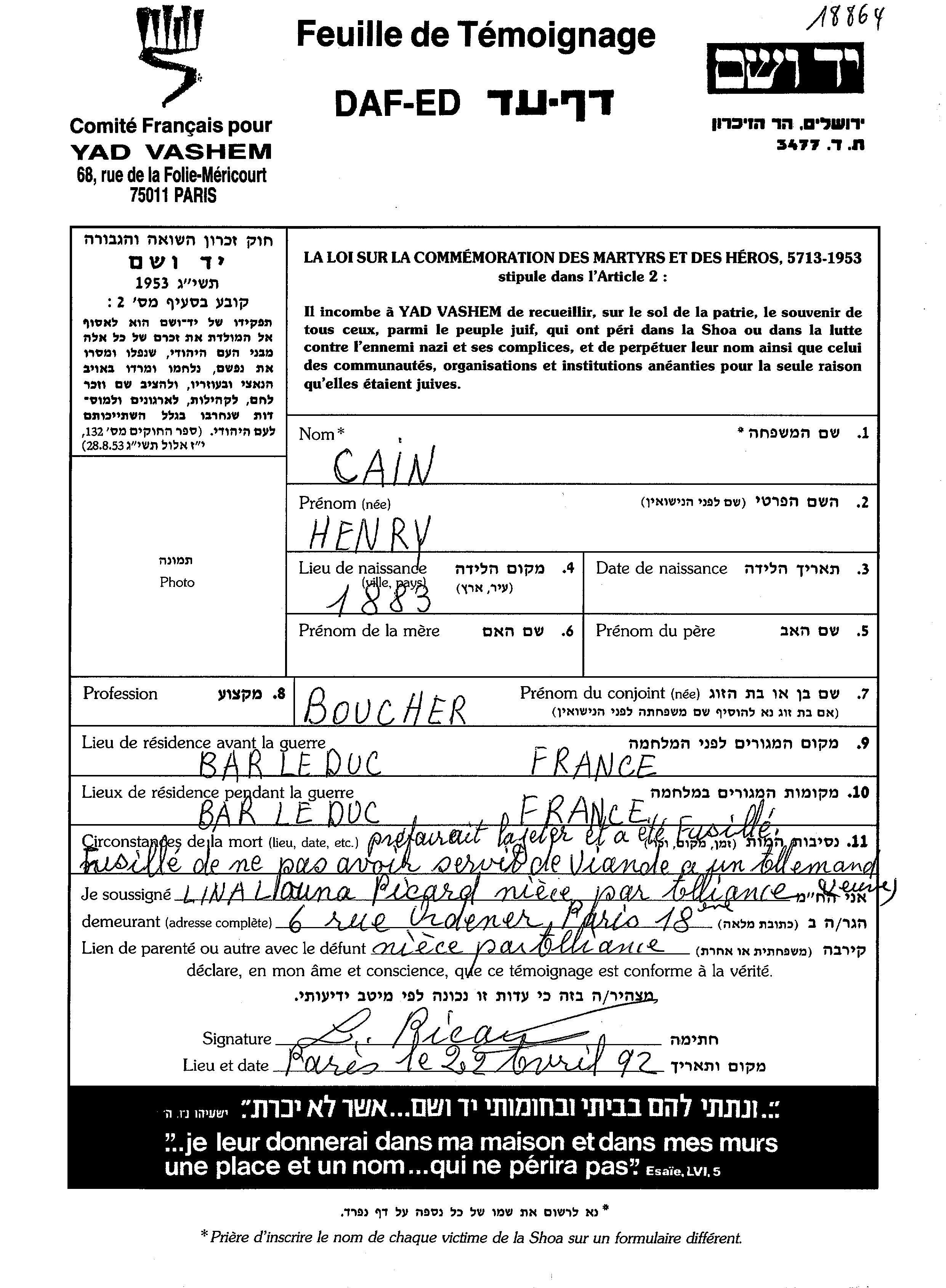Recherche par nom du dépositeur de la Feuille de témoignage. Cette recherché indique aussi les noms de jeunes filles.
