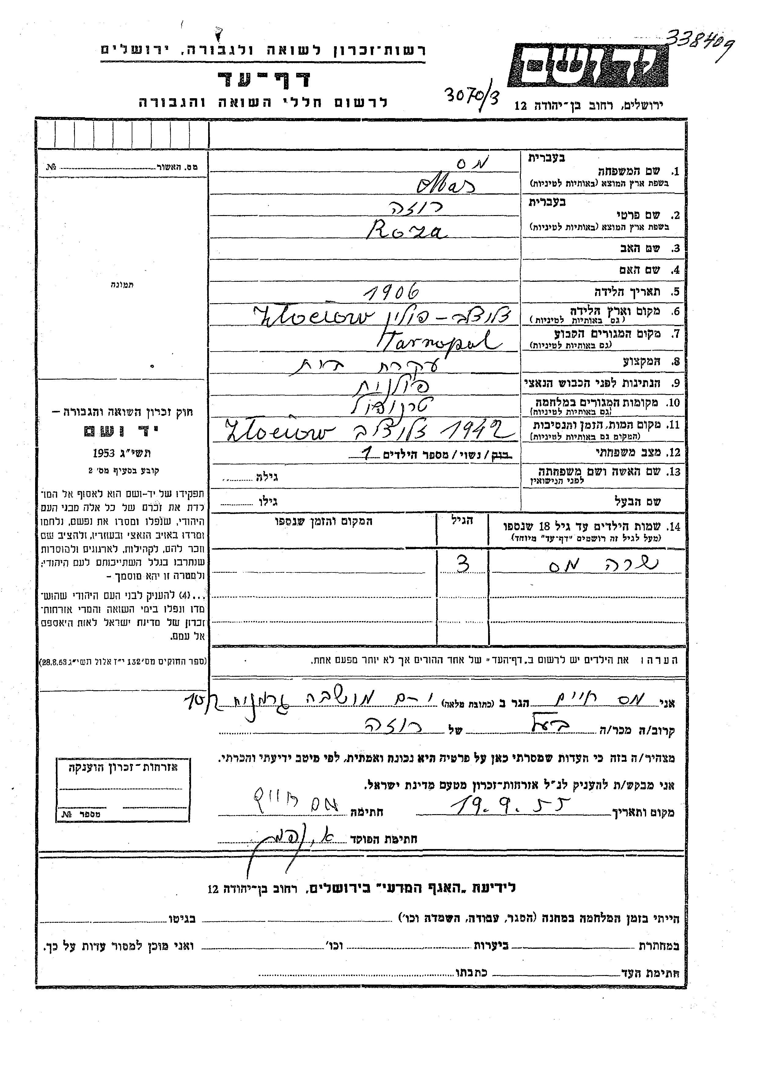 Yad Vashem - Pages of Testimony Names Memorial Collection