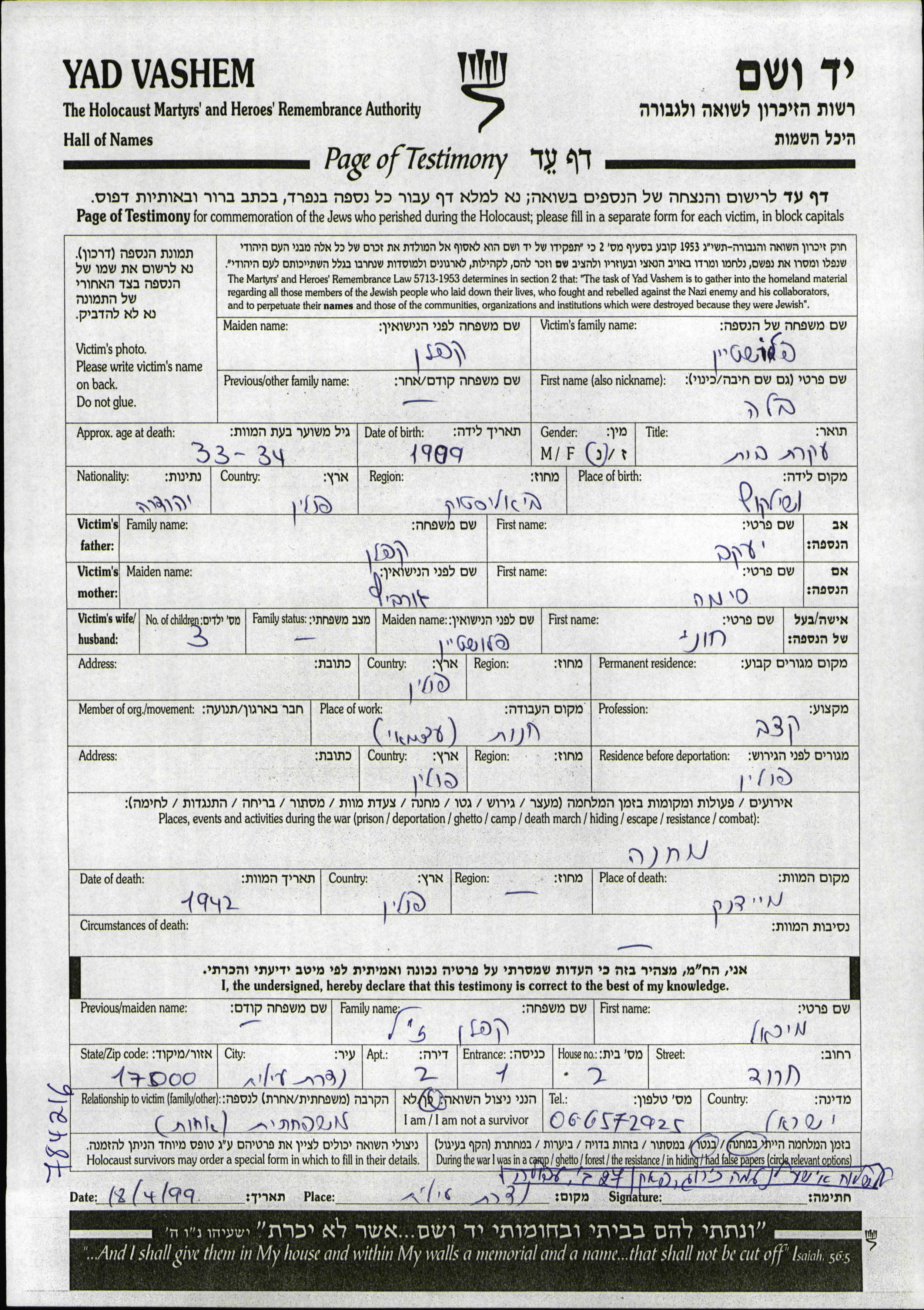 Yad Vashem - Pages of Testimony Names Memorial Collection