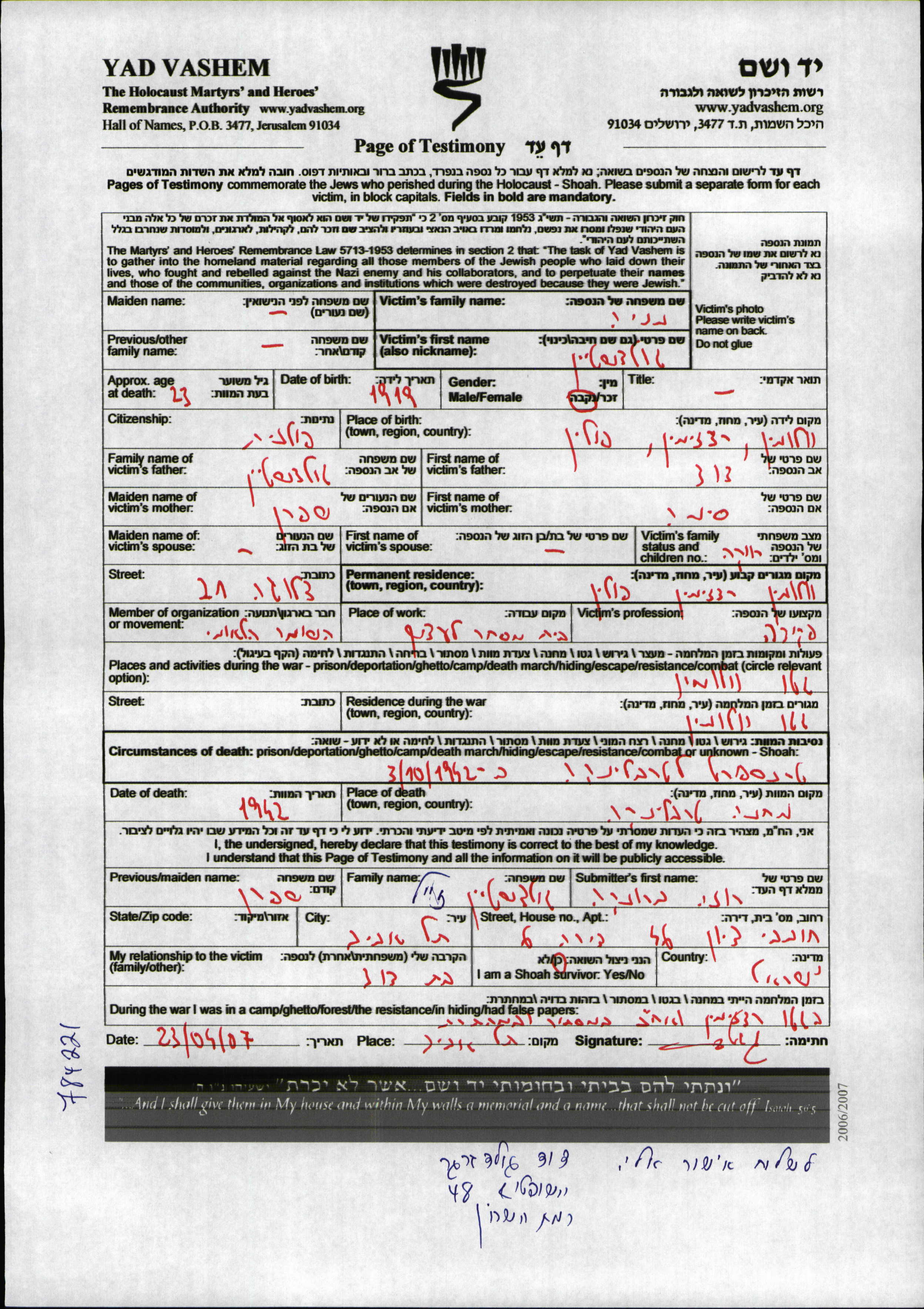 Yad Vashem - Pages of Testimony Names Memorial Collection