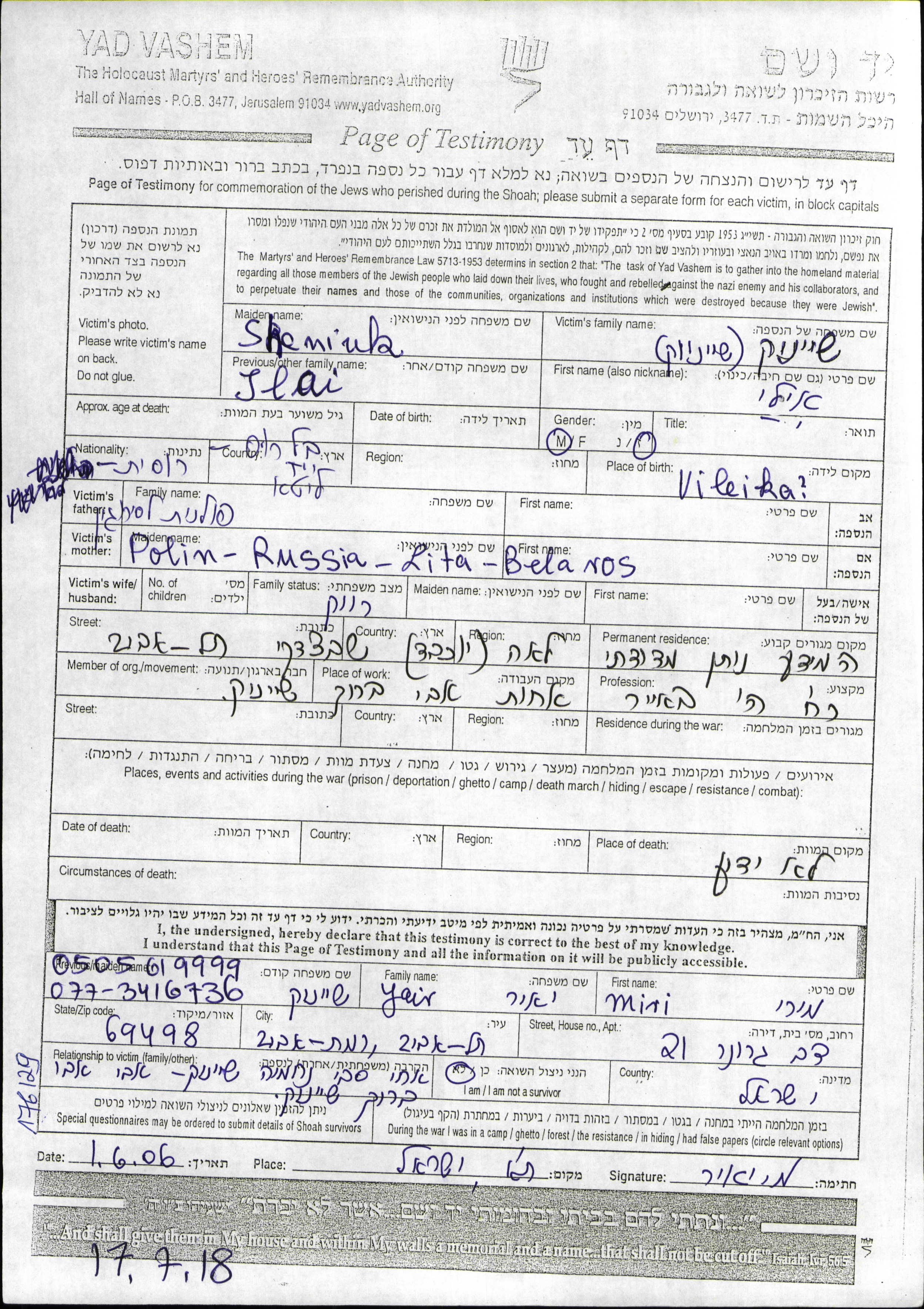 Yad Vashem - Pages of Testimony Names Memorial Collection