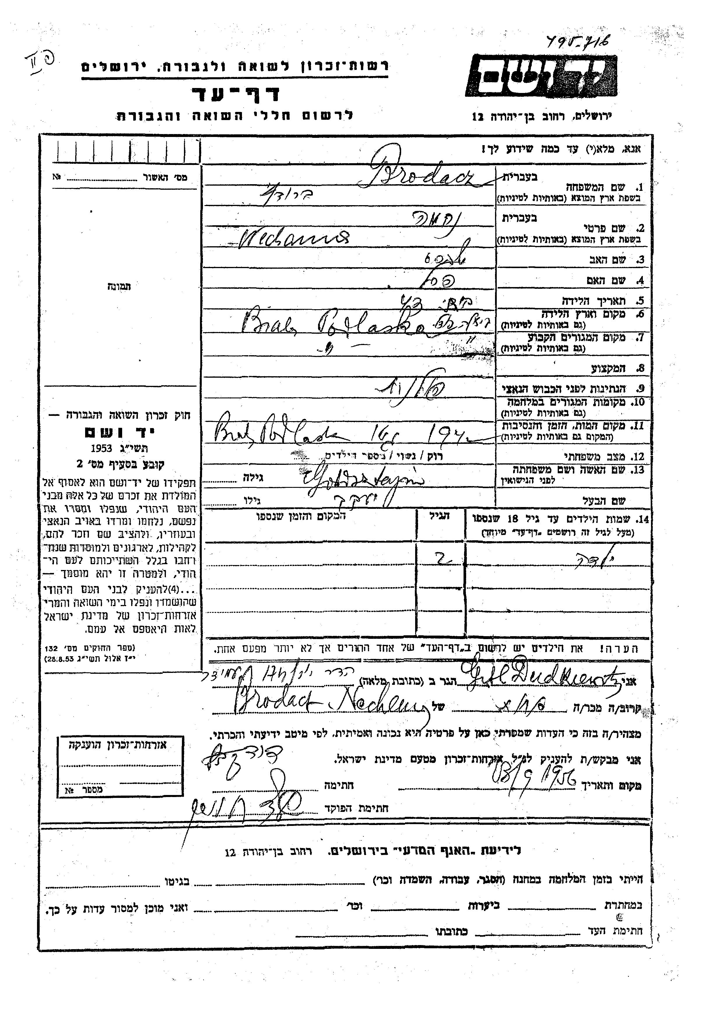 Yad Vashem - Pages of Testimony Names Memorial Collection
