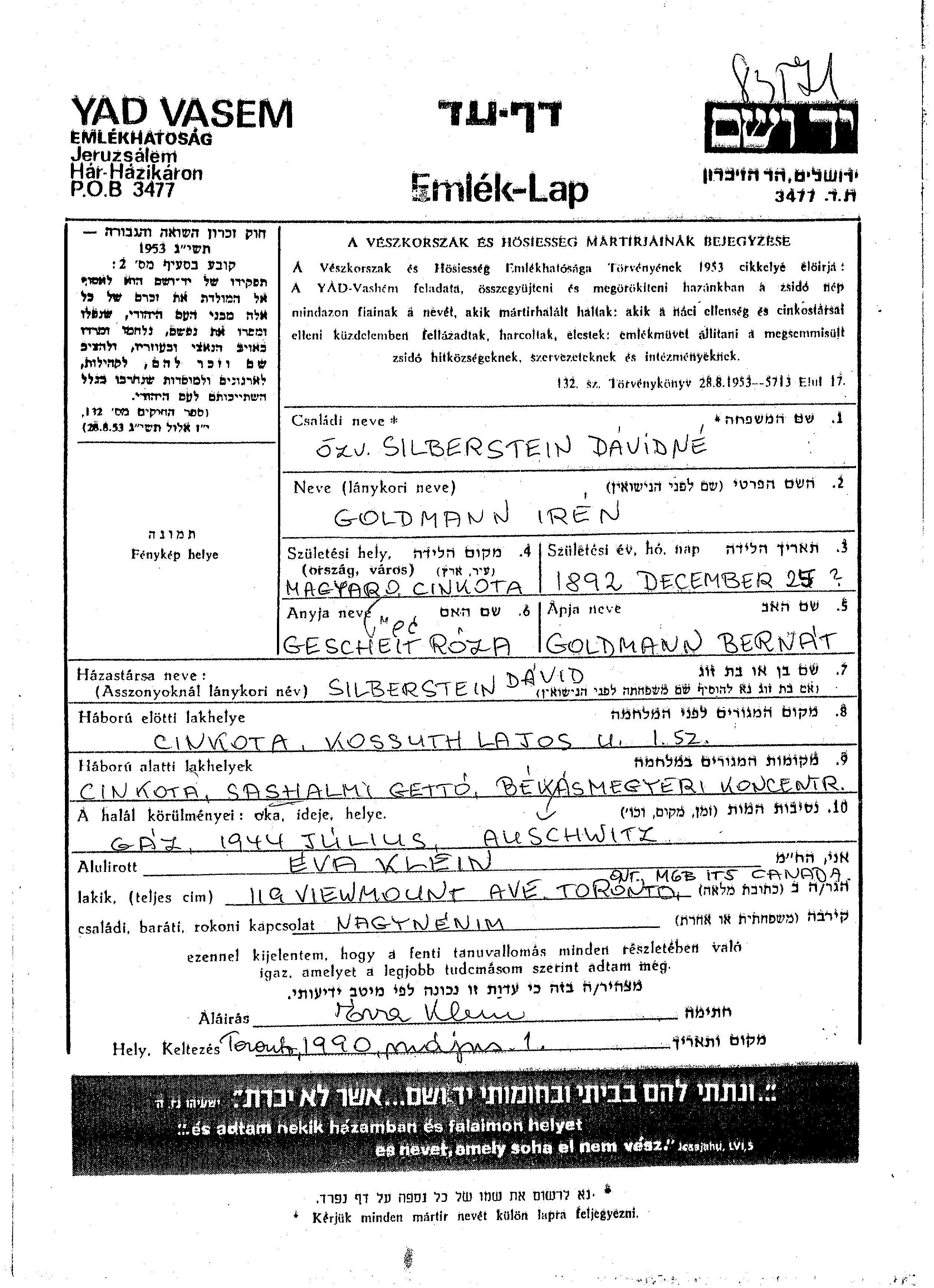 Silberstein | Iren | 1892 | Cinkota, Hongrie | Liste des Juifs de Hongrie assassinés |