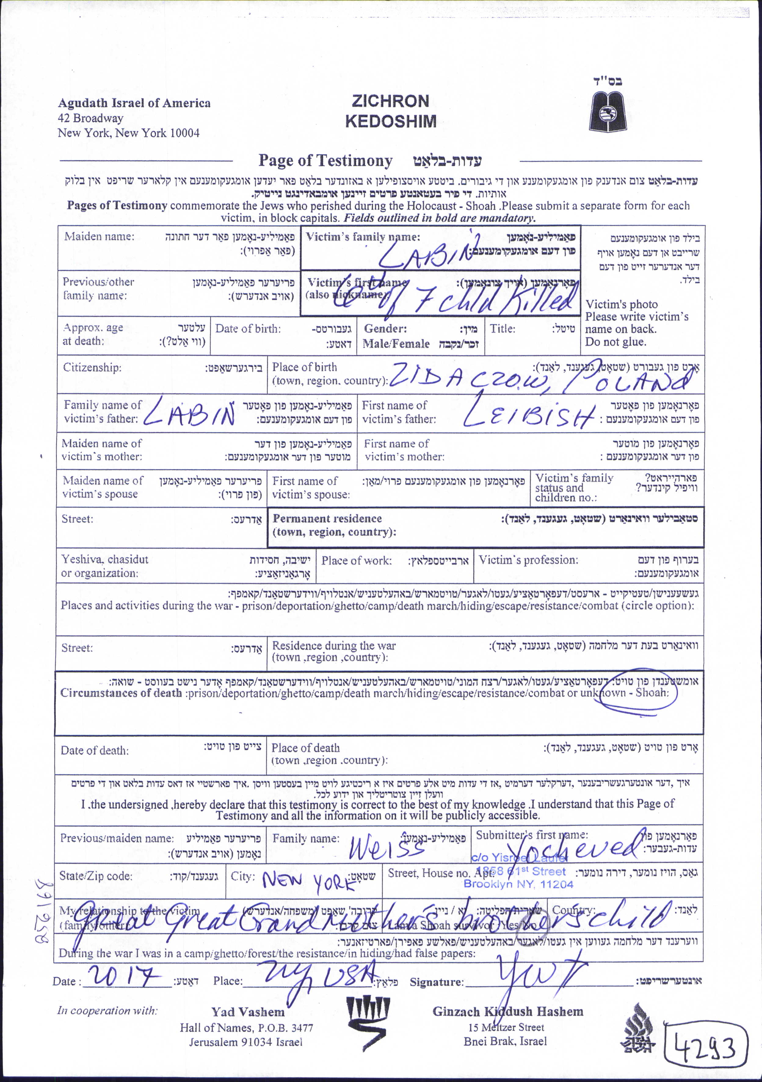Yad Vashem - Pages of Testimony Names Memorial Collection