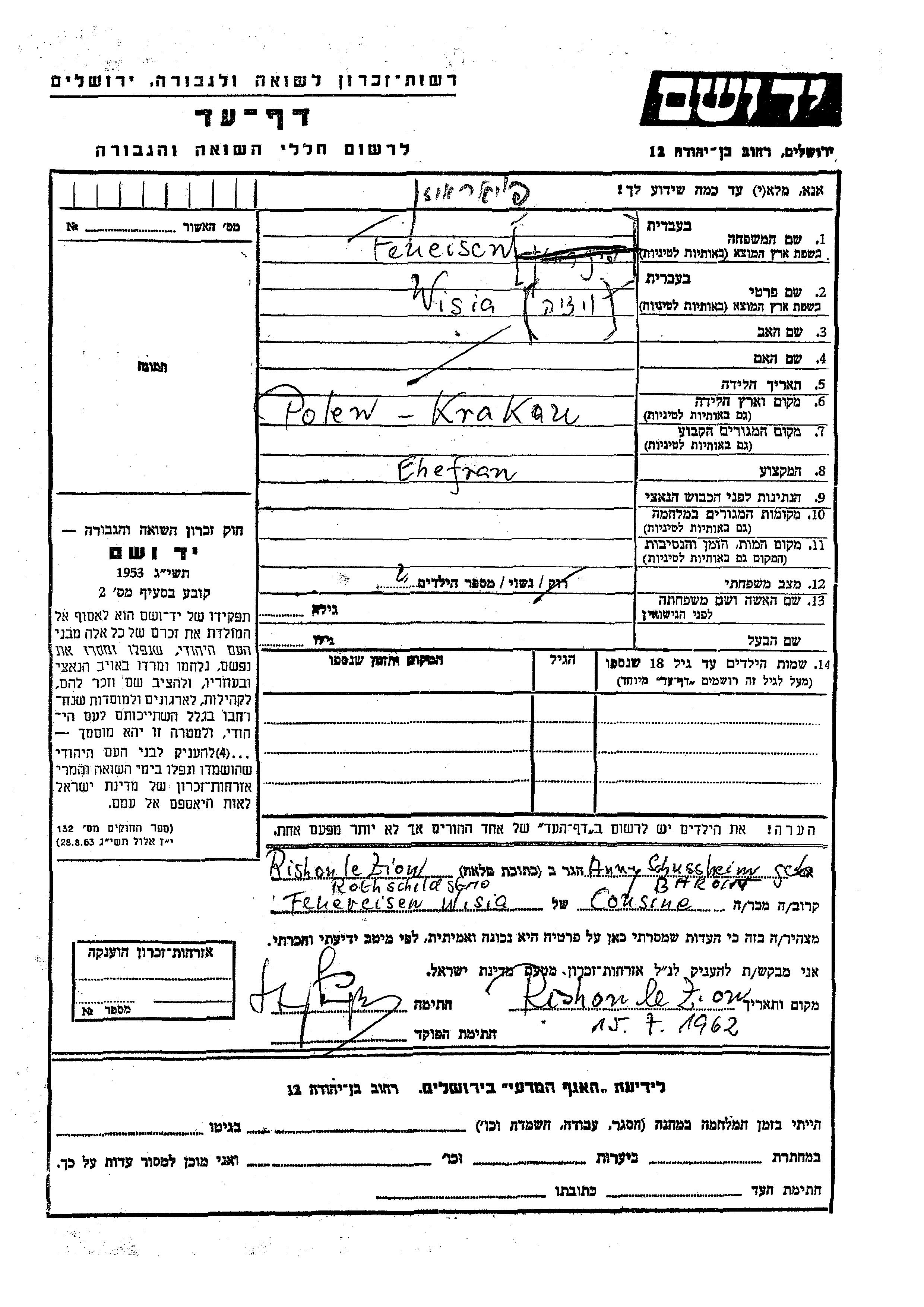 Yad Vashem - Pages of Testimony Names Memorial Collection