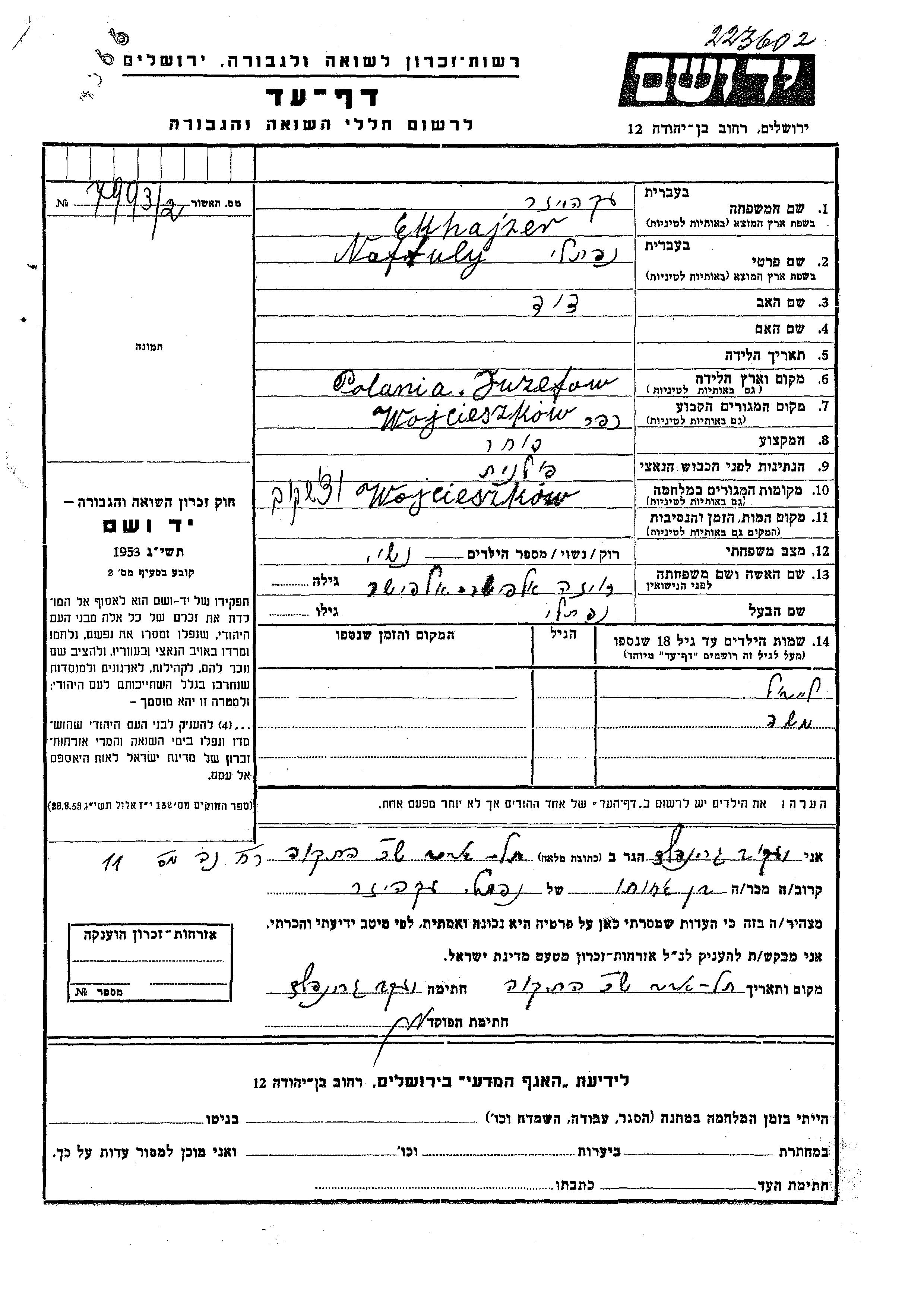 Yad Vashem - Pages of Testimony Names Memorial Collection