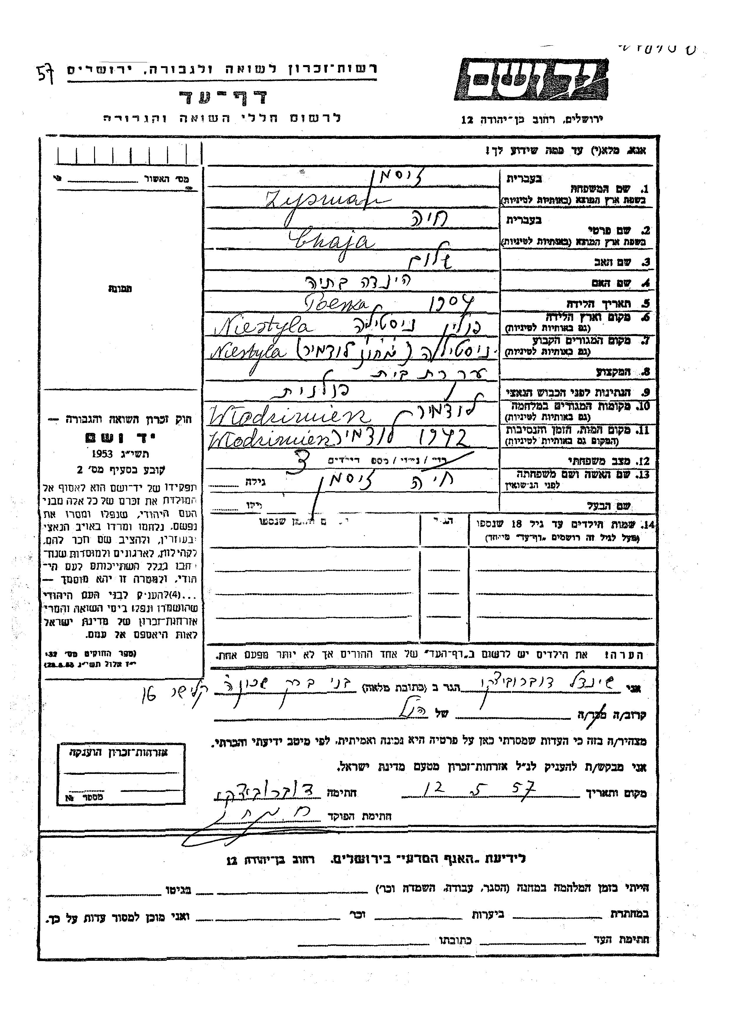 Yad Vashem - Pages of Testimony Names Memorial Collection