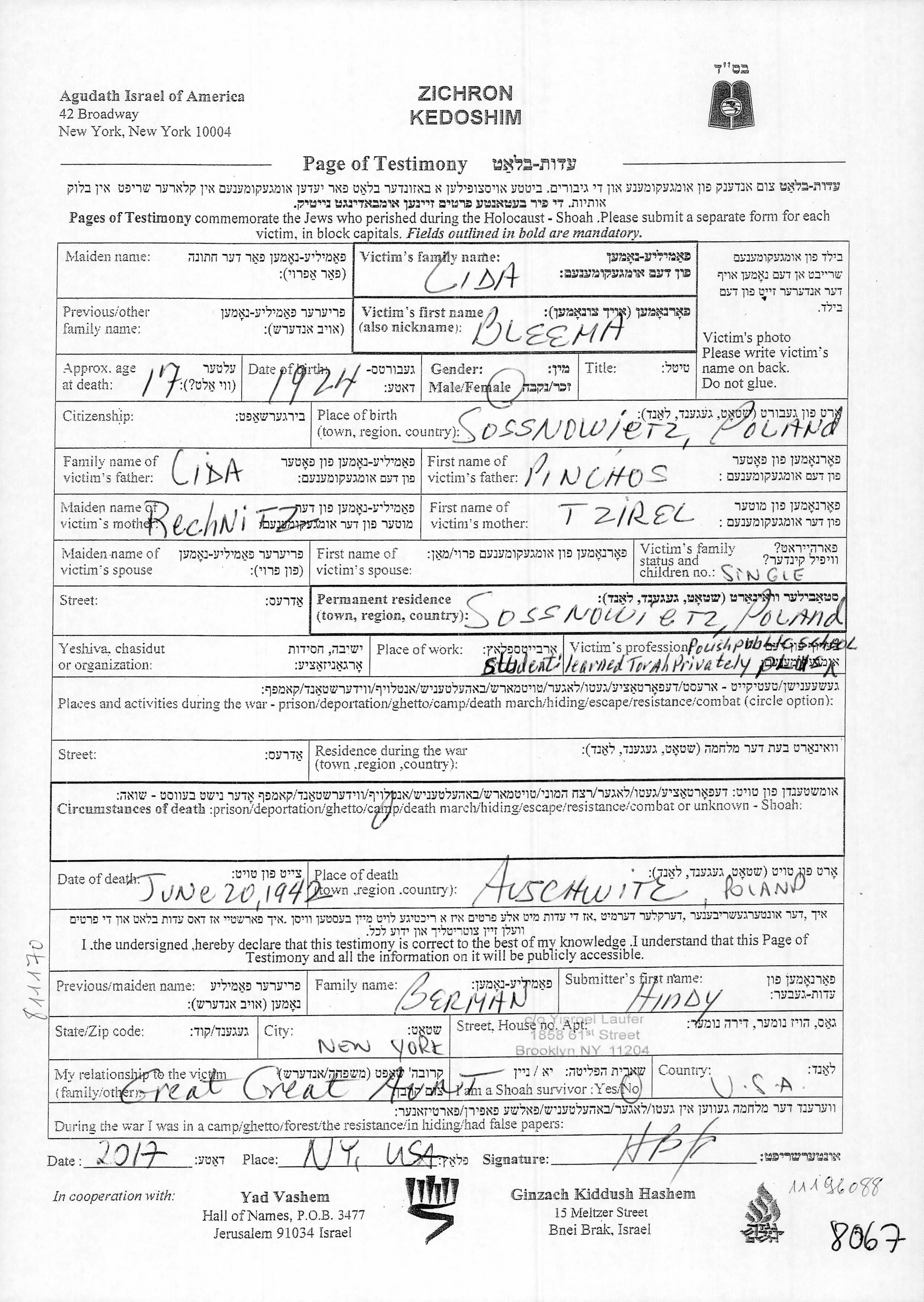 Yad Vashem - Pages of Testimony Names Memorial Collection
