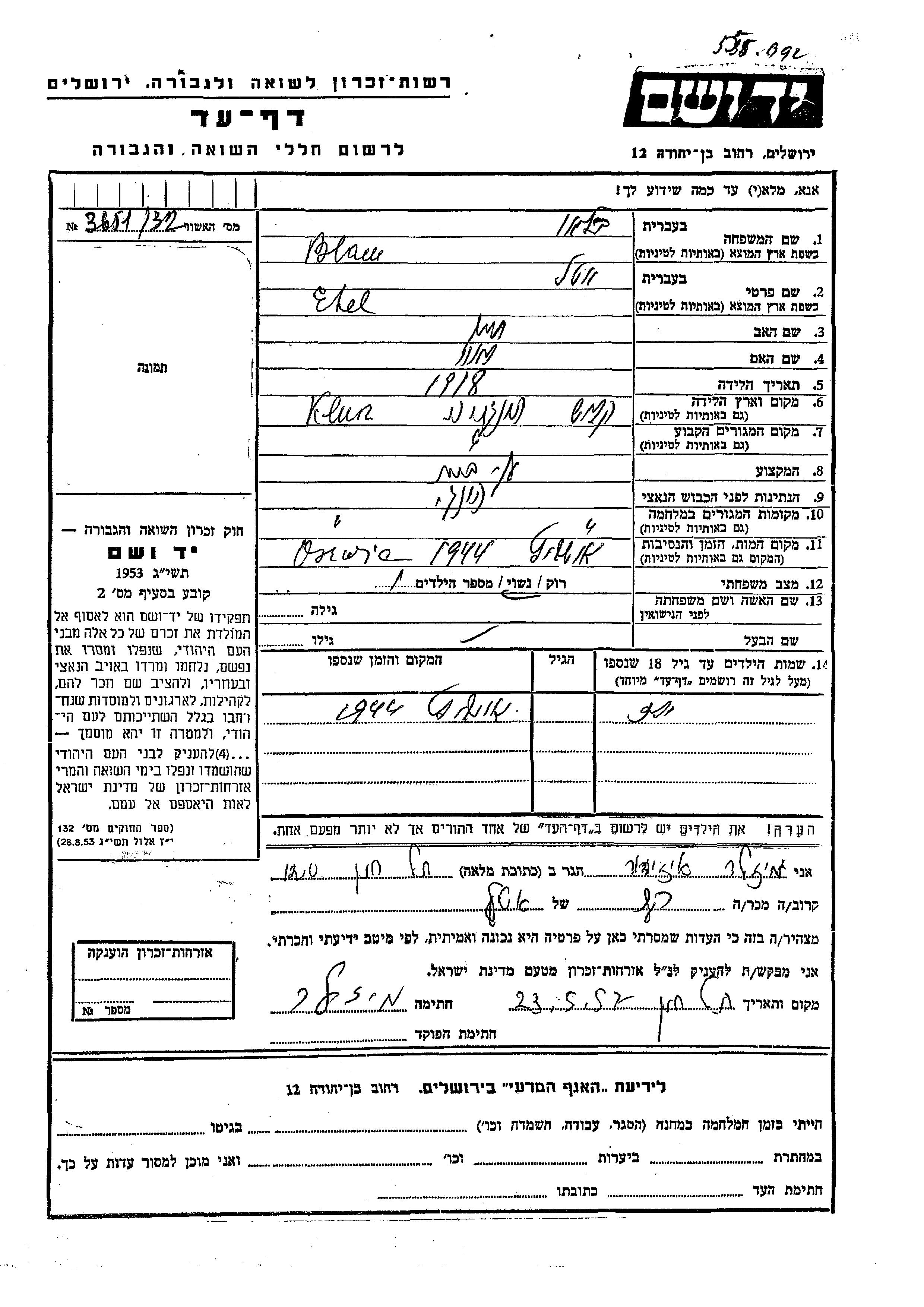 Yad Vashem - Pages of Testimony Names Memorial Collection