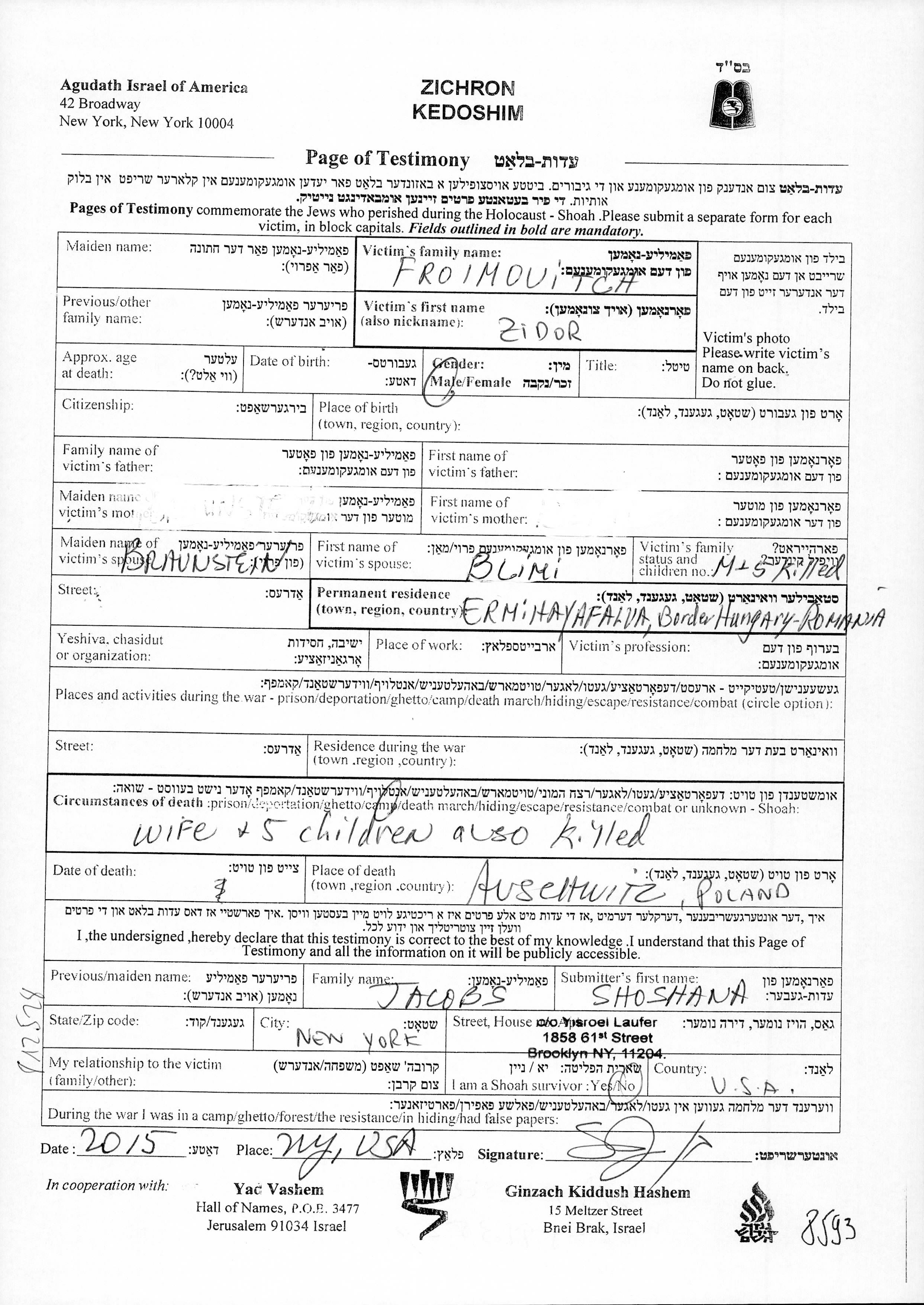 Recherche par lieu de résidence permanente avant la Shoah, ville, village, département, région ou pays.
