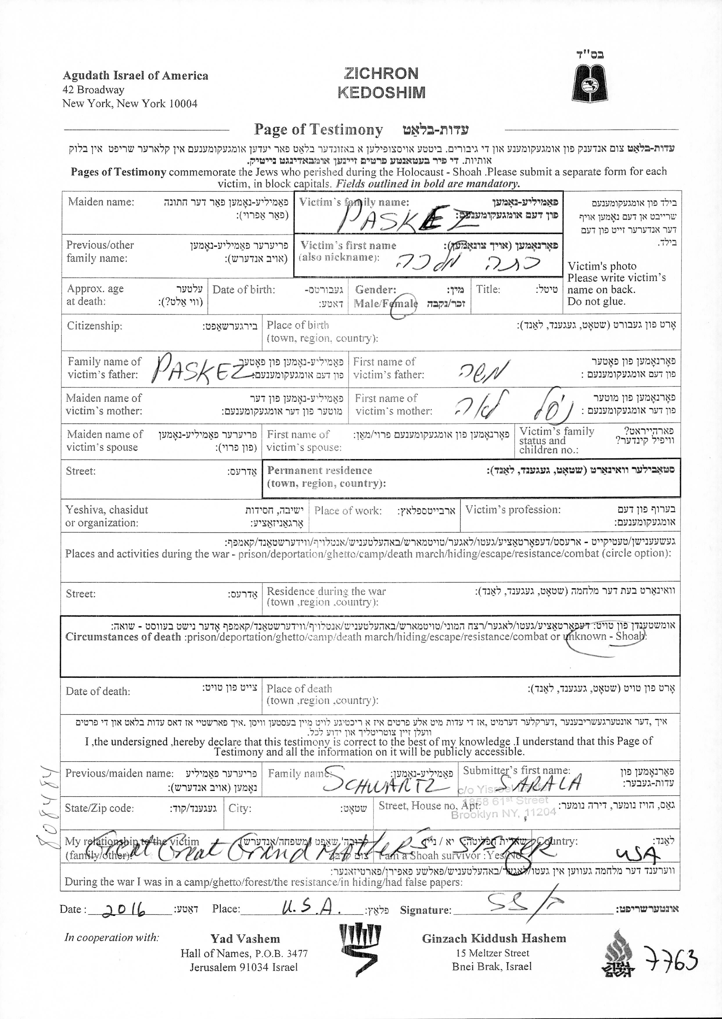 Yad Vashem - Pages of Testimony Names Memorial Collection