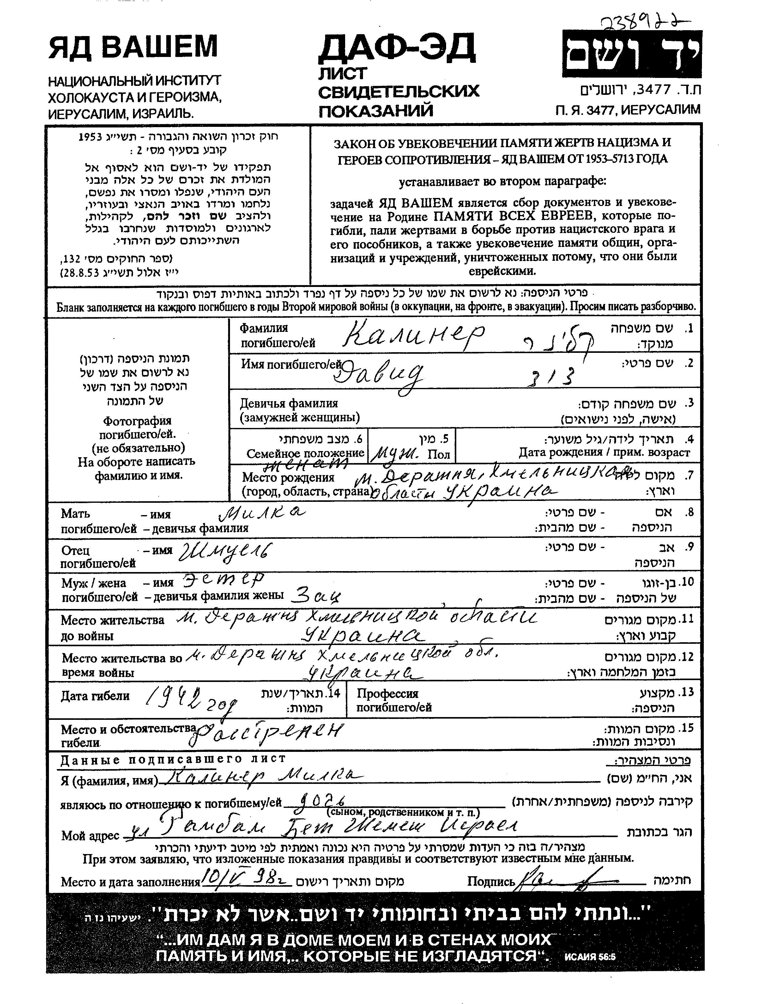 Yad Vashem - Pages of Testimony Names Memorial Collection