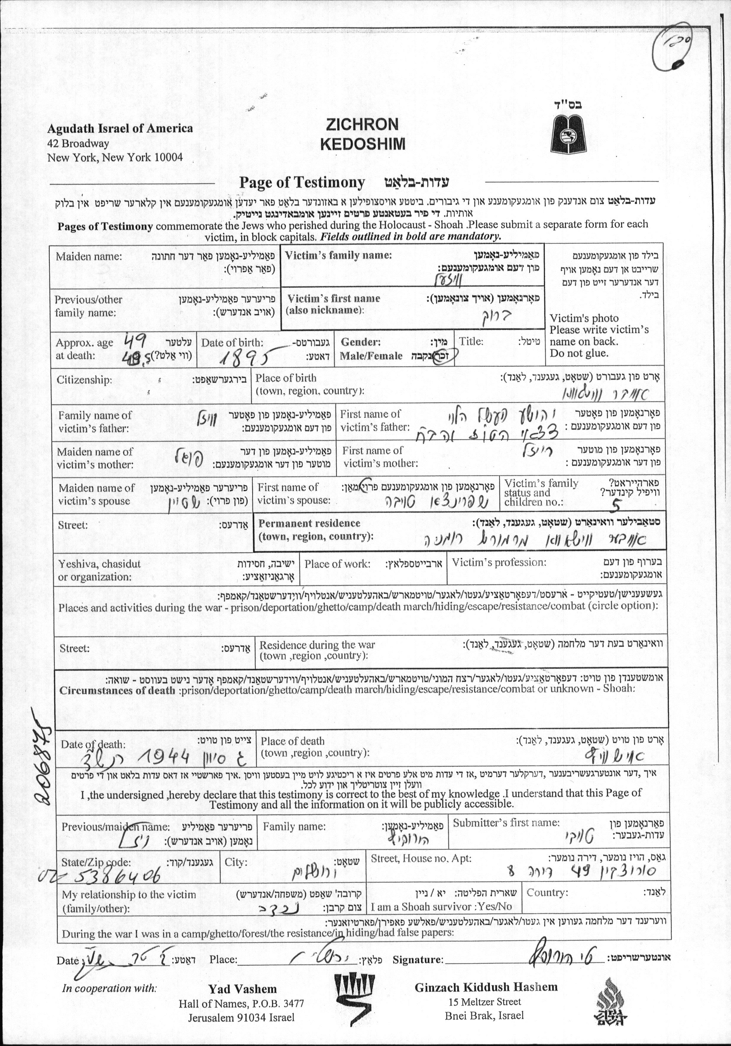 Recherche par date de la mort pendant la période de la Shoah: 1933-1945. Sélectionnez 'Exact'; dans la liste pour rechercher l'année exacte, ou sélectionner '+/- 2 ans'; ou '+/- 5 ans