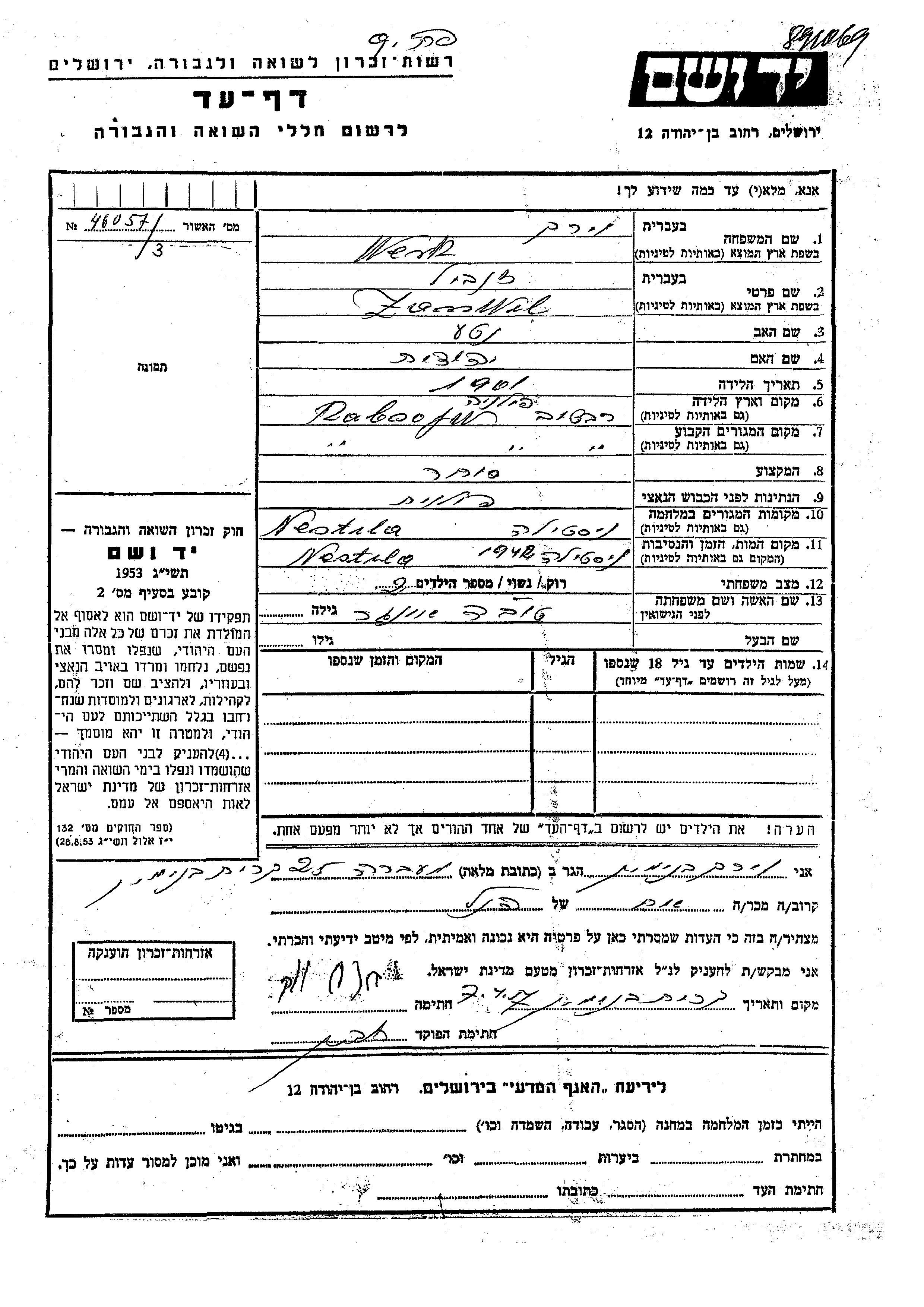 Yad Vashem - Pages of Testimony Names Memorial Collection
