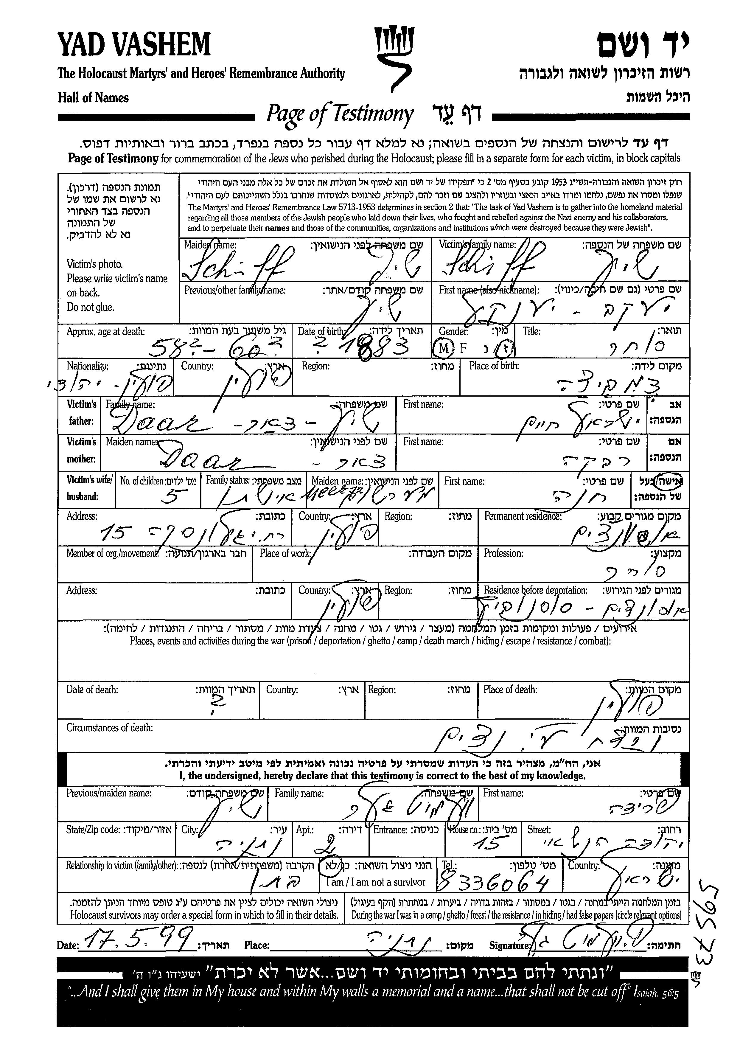 Yad Vashem - Pages of Testimony Names Memorial Collection