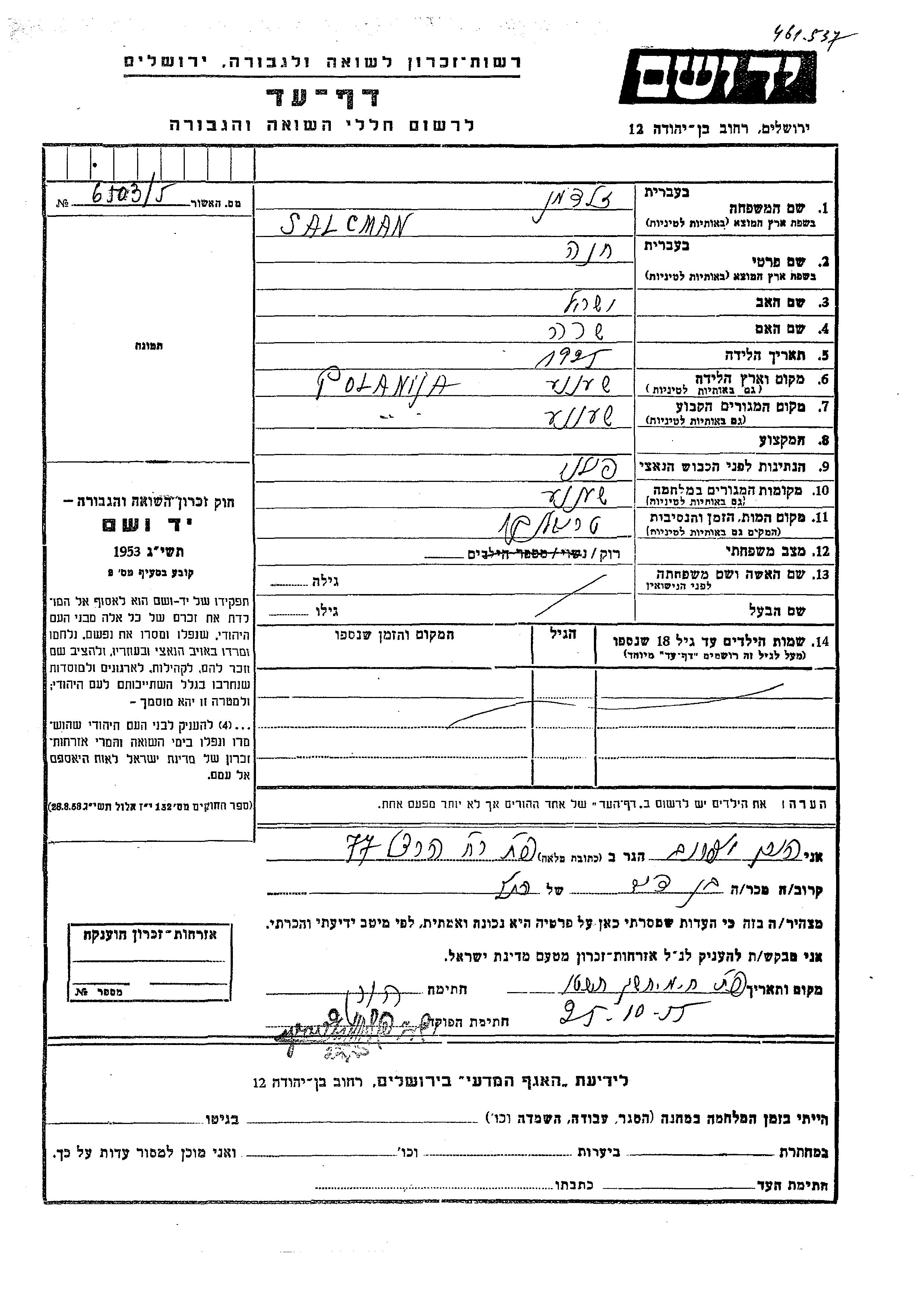 Yad Vashem - Pages of Testimony Names Memorial Collection
