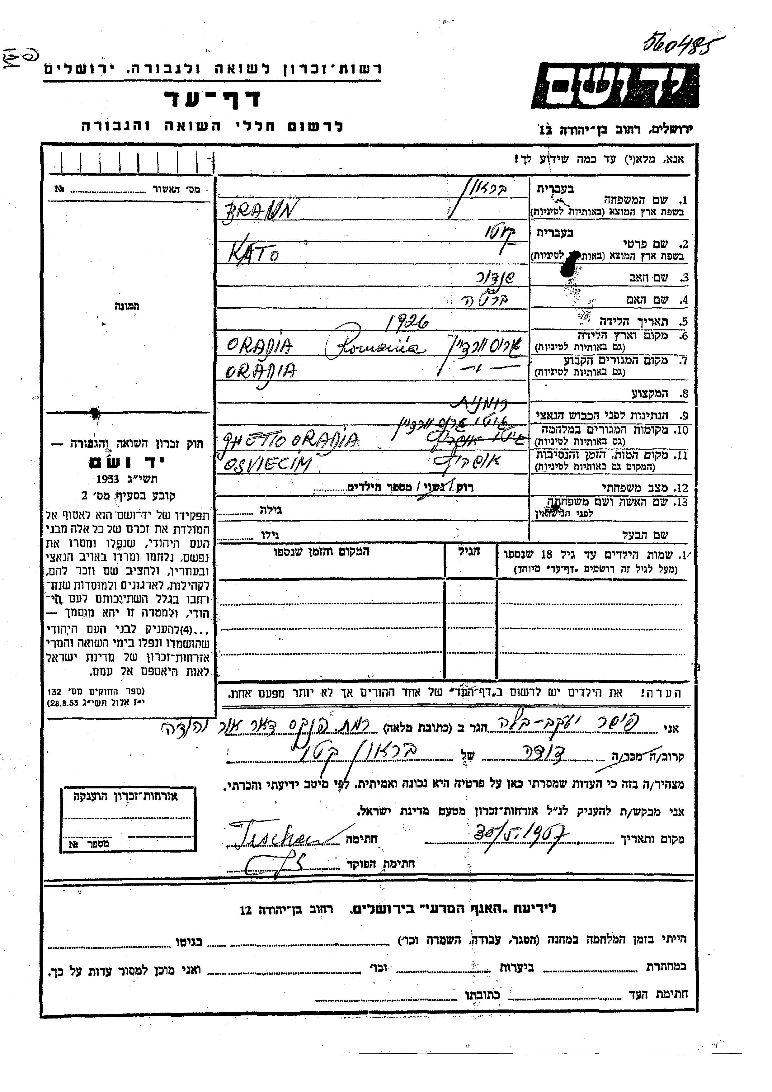 Gitel Kato a été assassinée pendant la Shoah. Lieu de la mort: Auschwitz, Pologne en 21/10/1944.