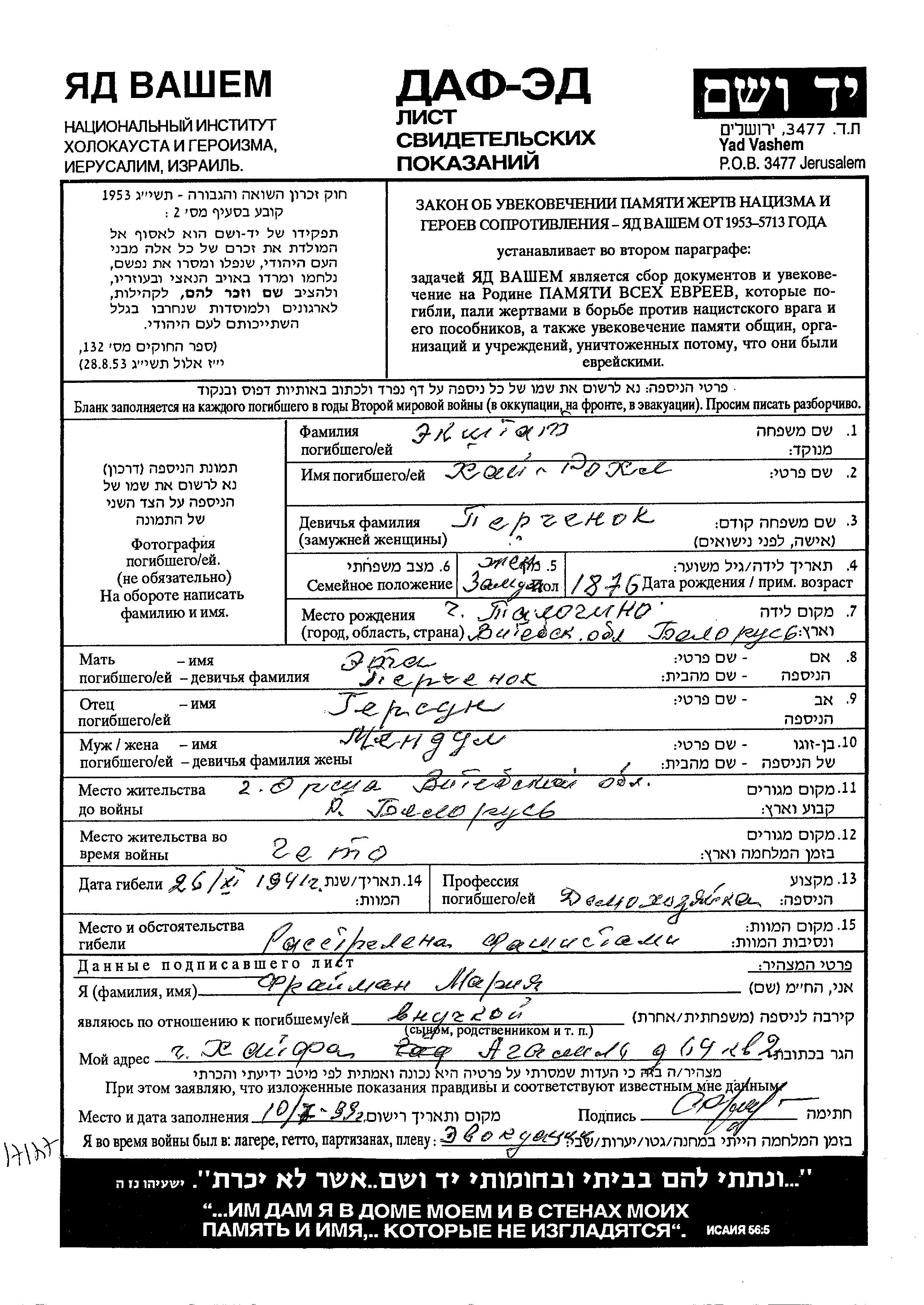 Yad Vashem - Pages of Testimony Names Memorial Collection