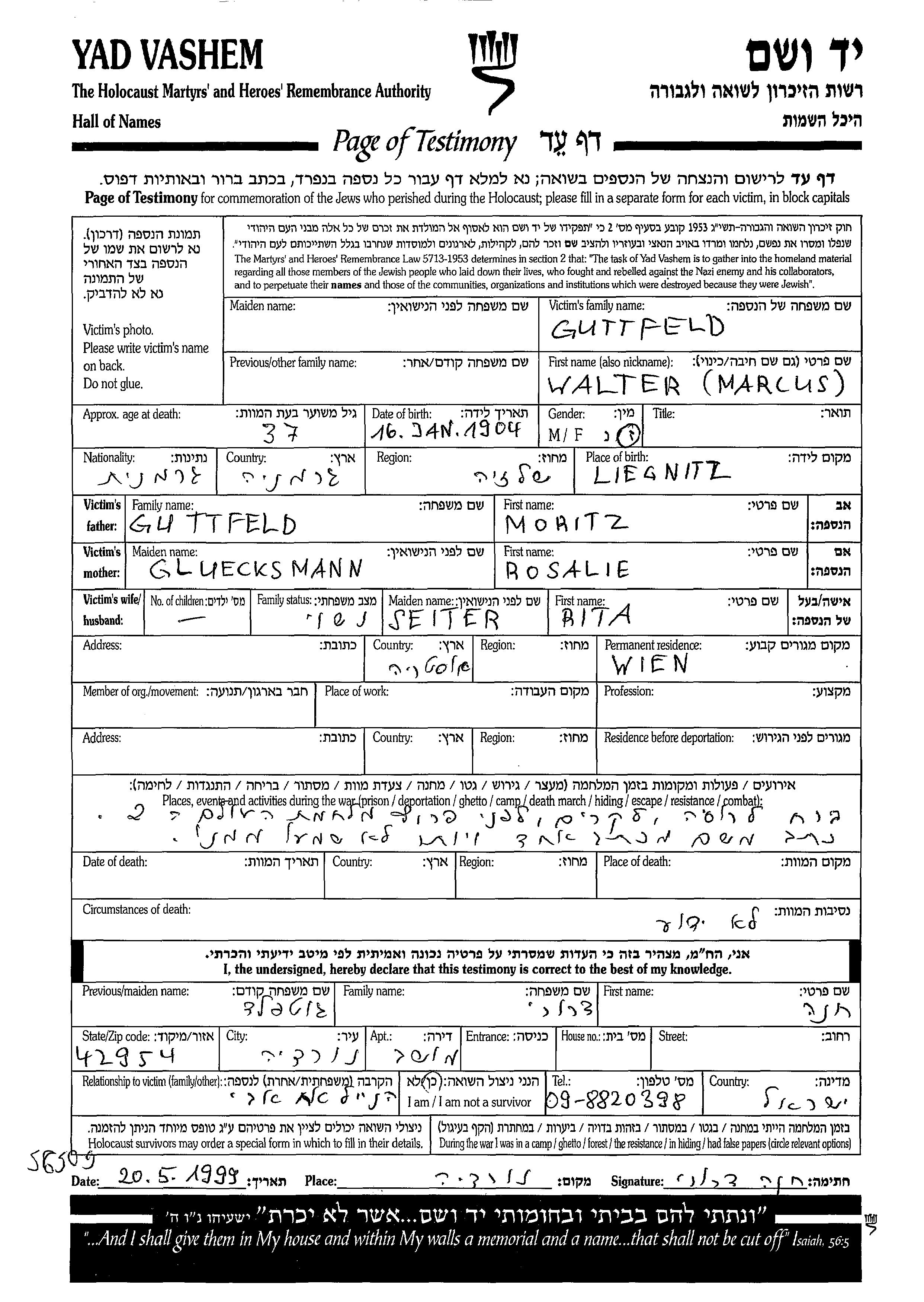 | Guttfeld | Walter | 1904 | Wien, Autriche | Feuille de témoignage |