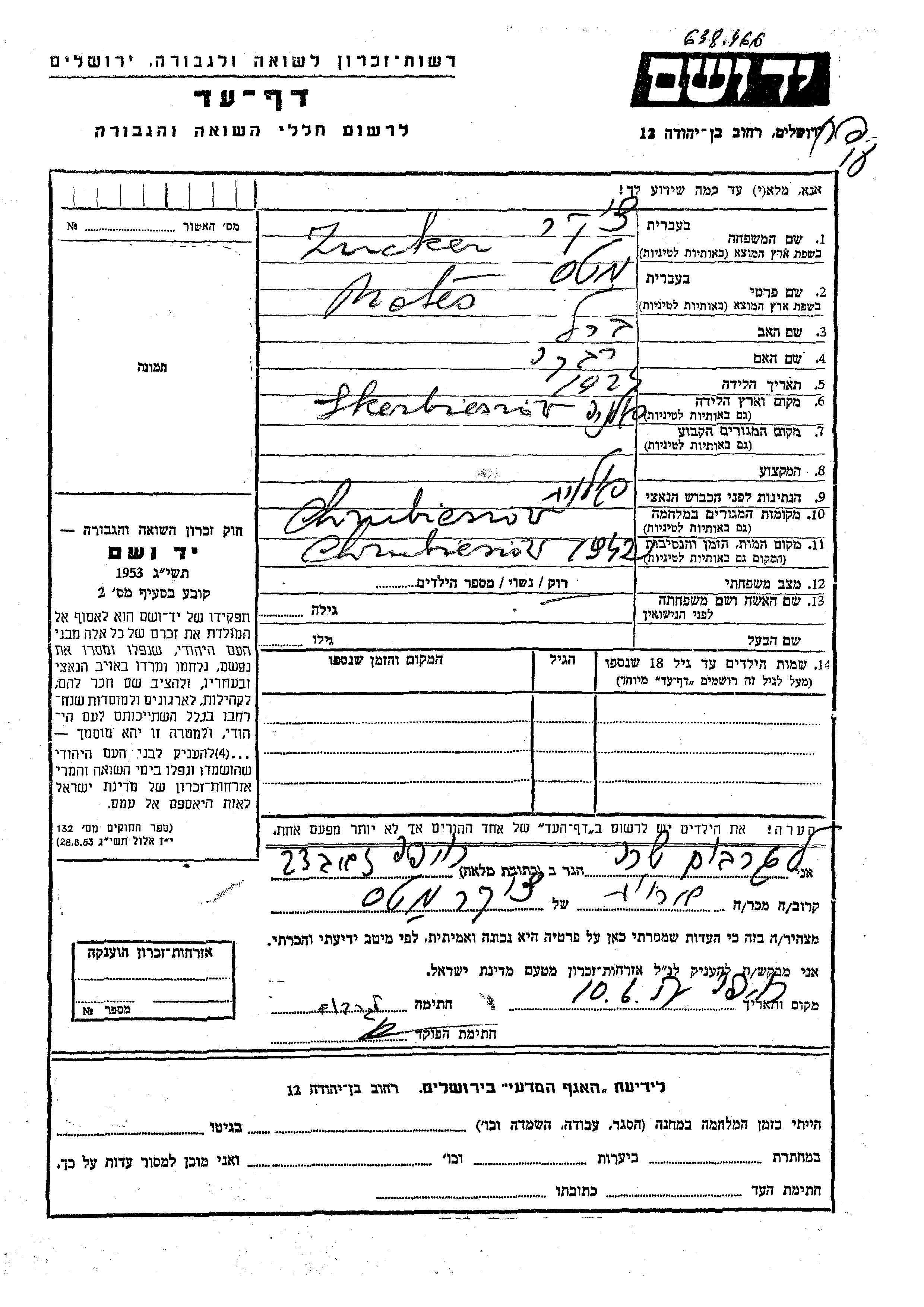 Yad Vashem - Pages of Testimony Names Memorial Collection