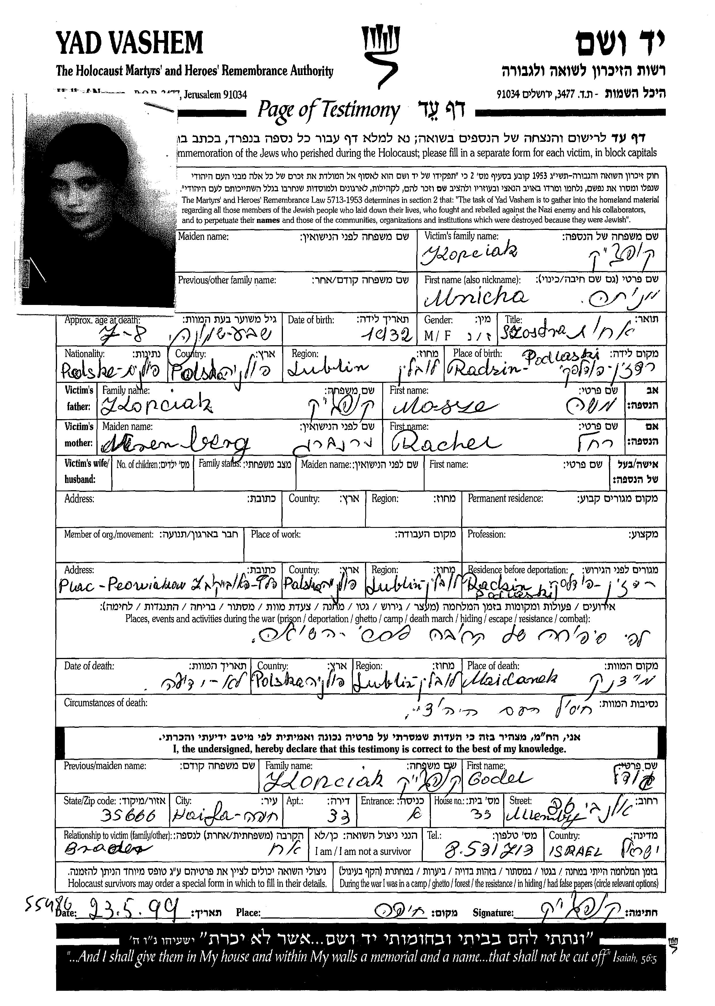 Yad Vashem - Pages of Testimony Names Memorial Collection