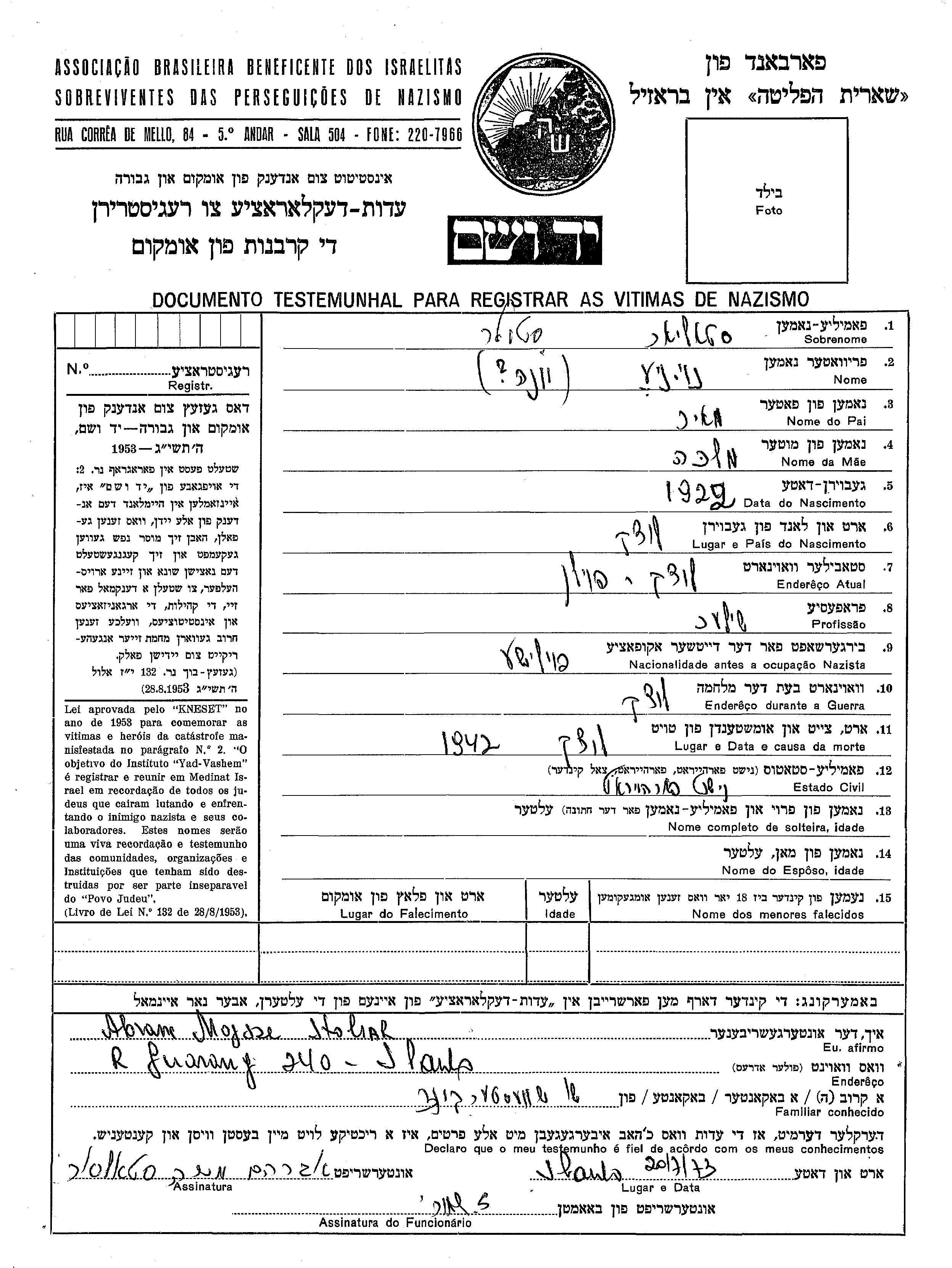 Yad Vashem - Pages of Testimony Names Memorial Collection