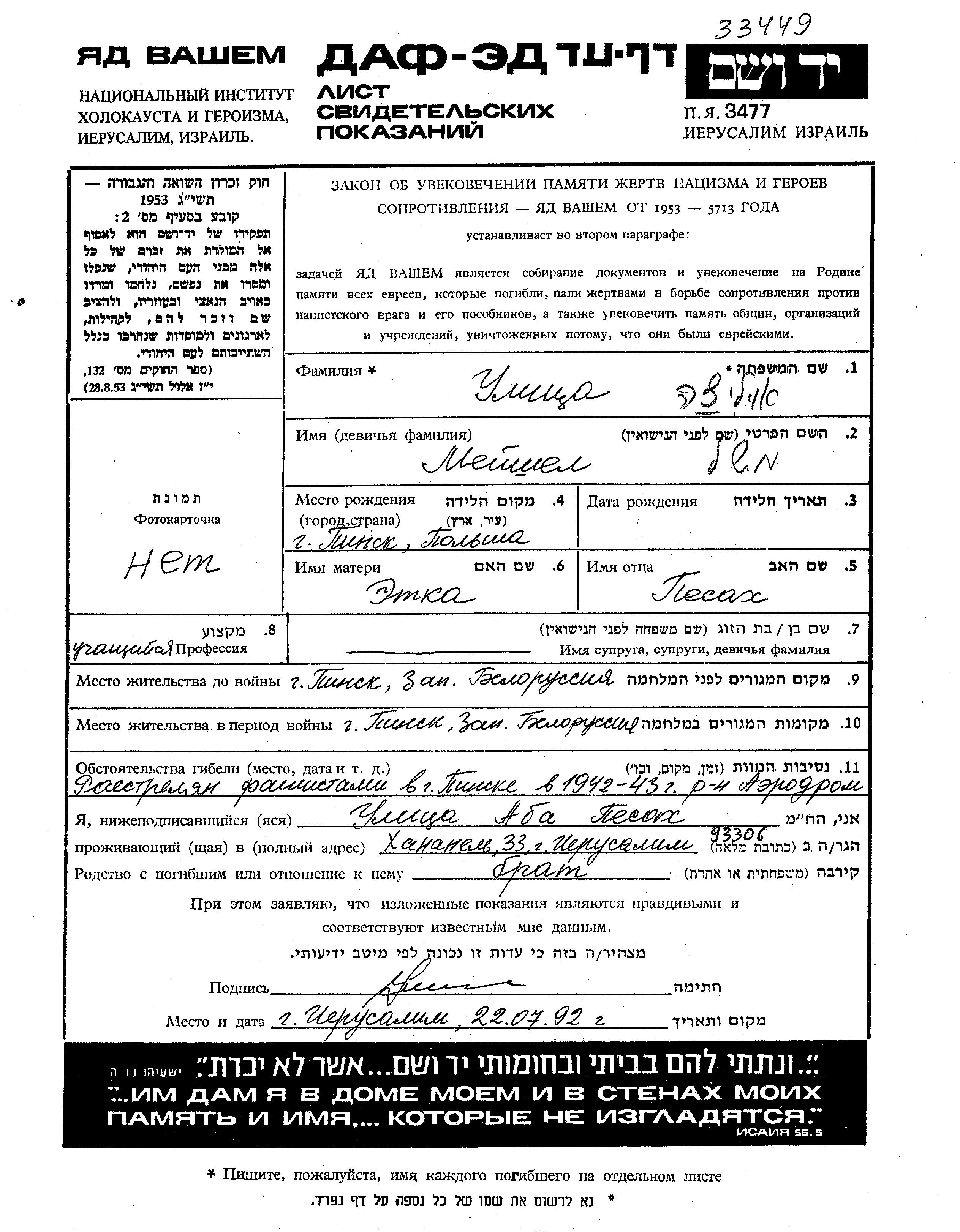 Yad Vashem - Pages of Testimony Names Memorial Collection