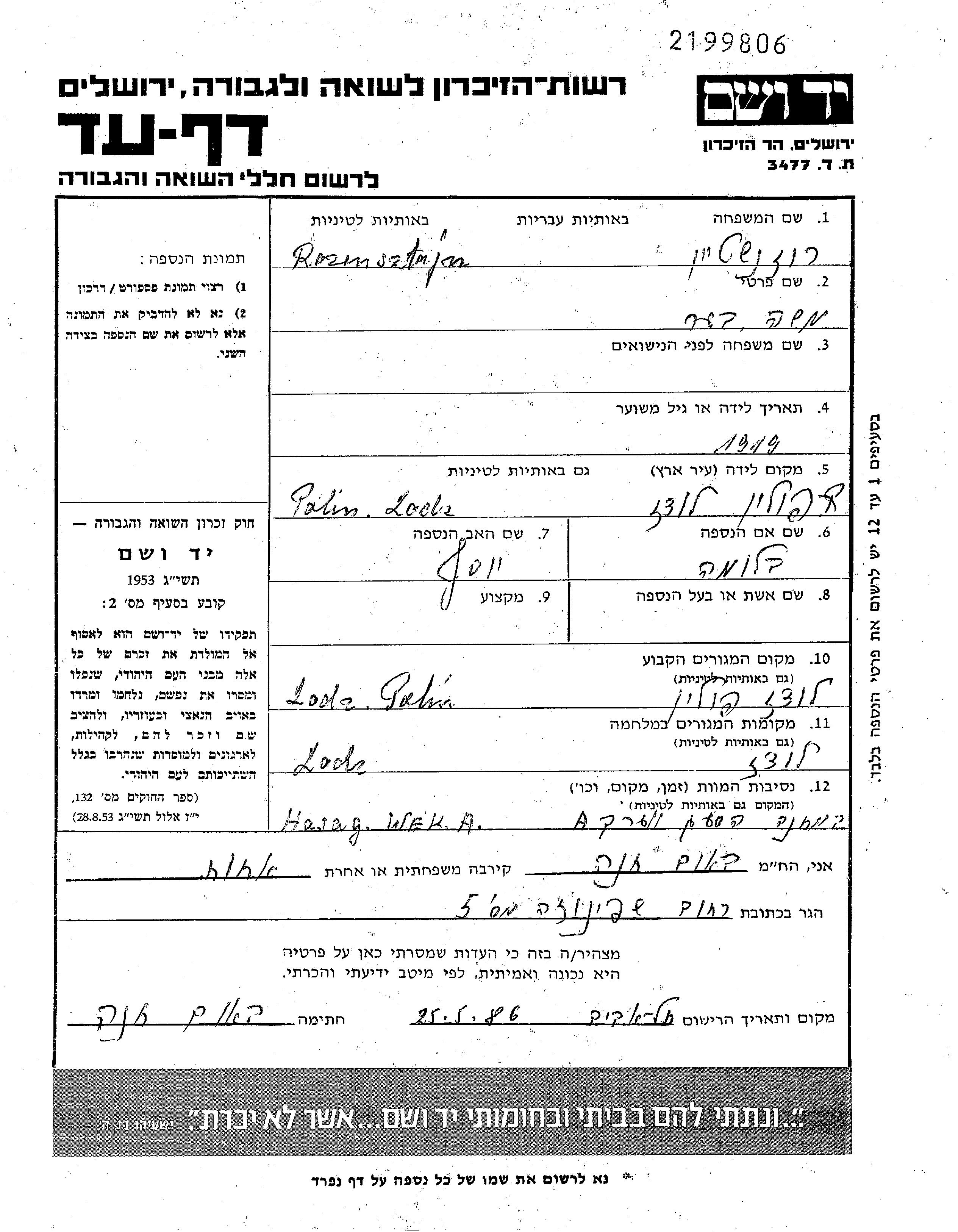 Yad Vashem - Pages of Testimony Names Memorial Collection