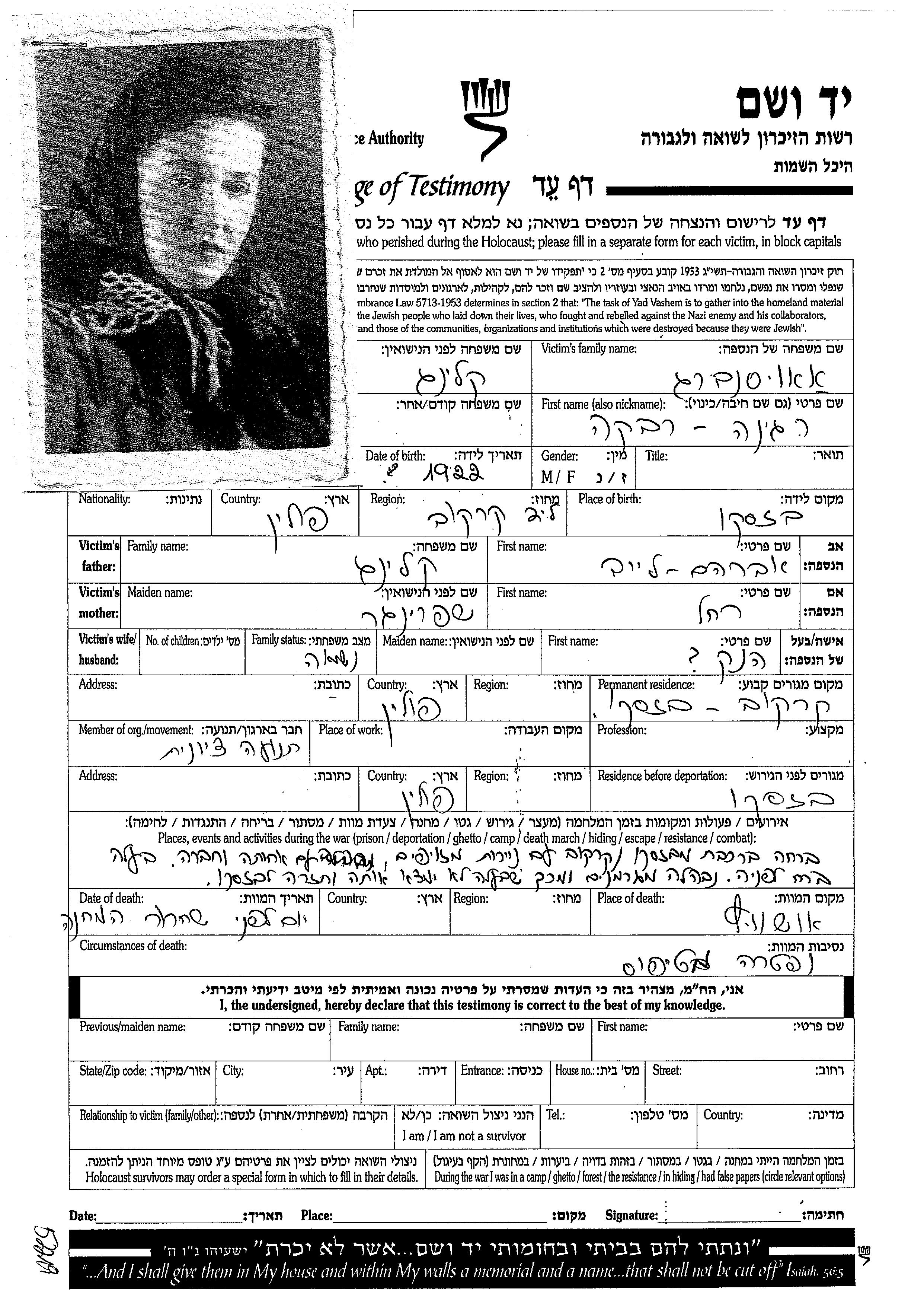 Yad Vashem - Pages of Testimony Names Memorial Collection