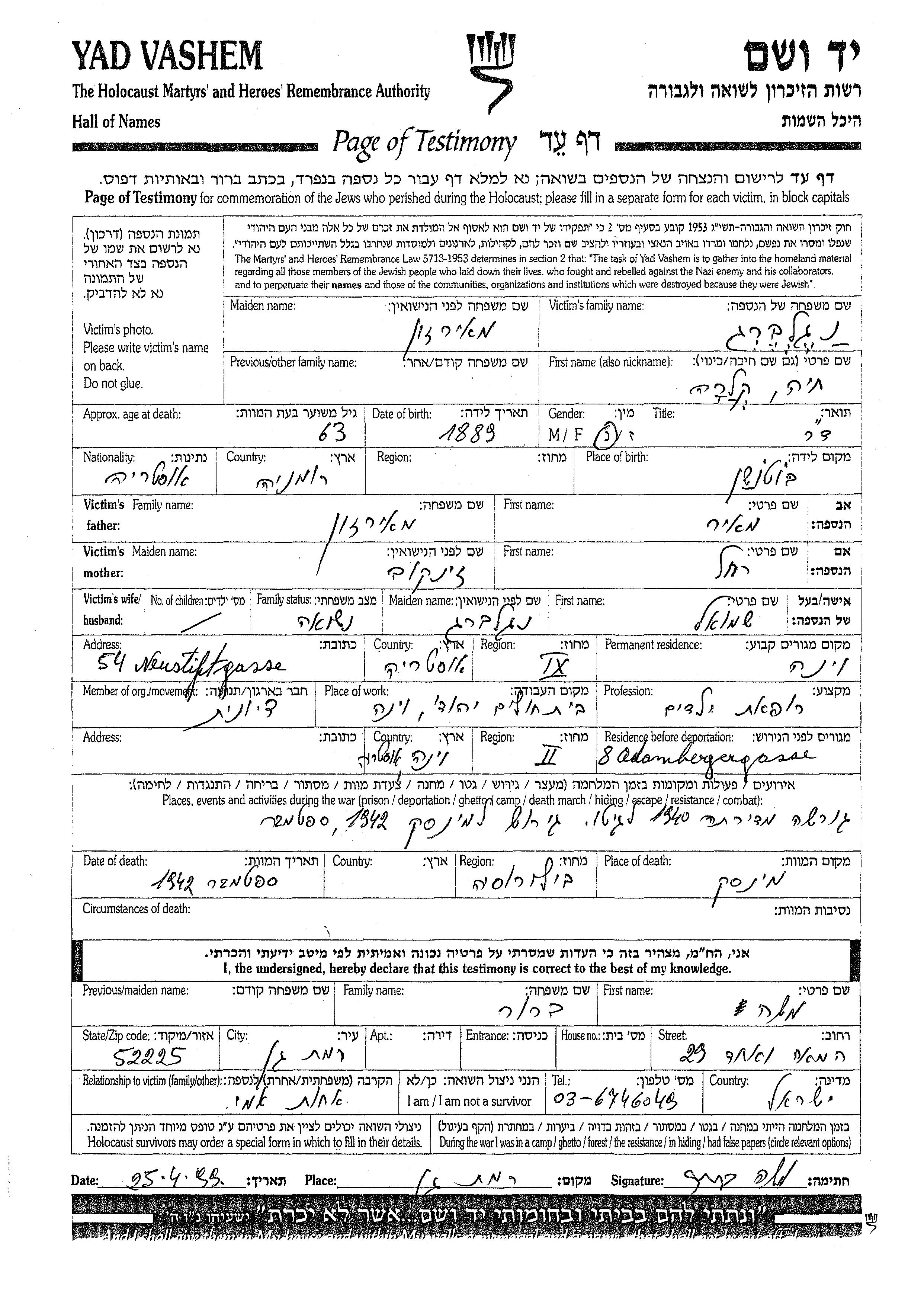 Yad Vashem - Pages of Testimony Names Memorial Collection