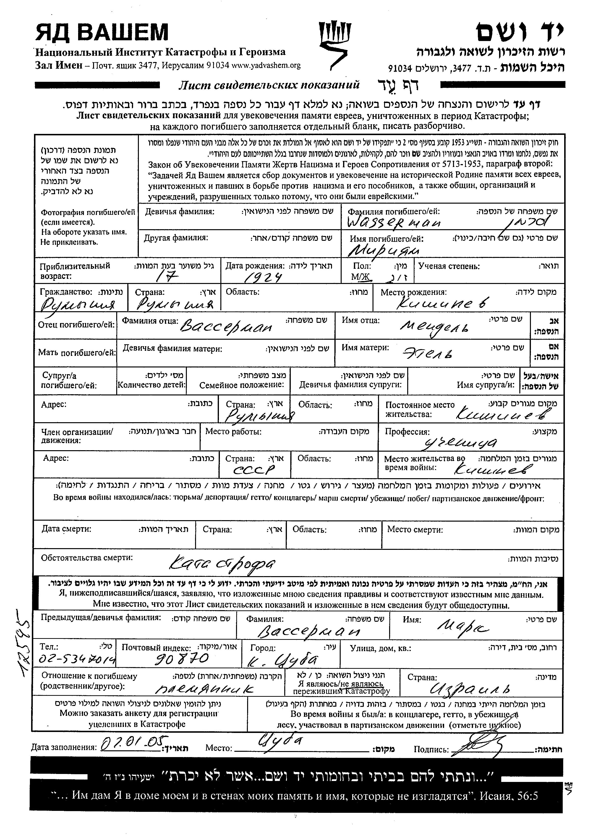 Yad Vashem - Pages of Testimony Names Memorial Collection
